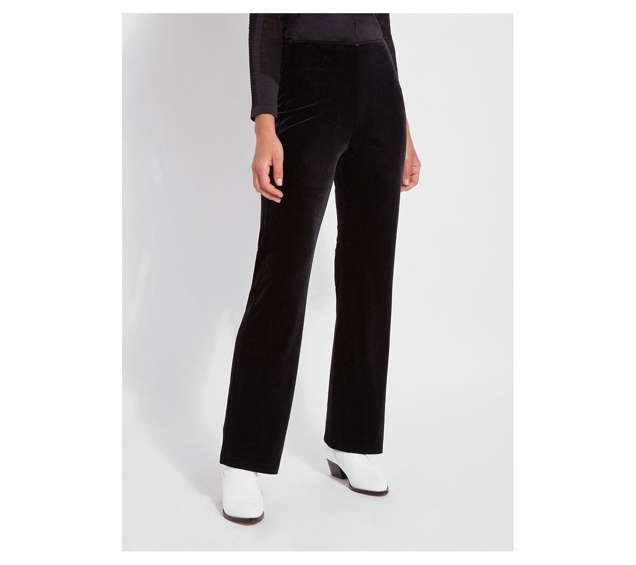 Elevate your wardrobe with the opulence of the Lysse New York pull-on wide-leg velvet pants. Their luxurious 4x-stretch velvet fabrication brings comfort and elegance to any outfit, ensuring you shine at every festive occasion. From Lysse.