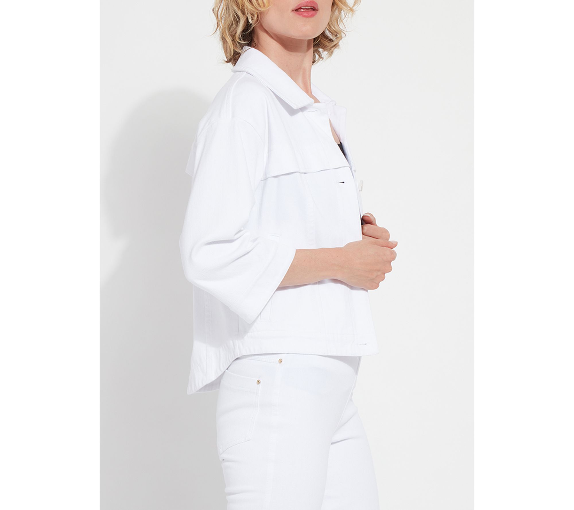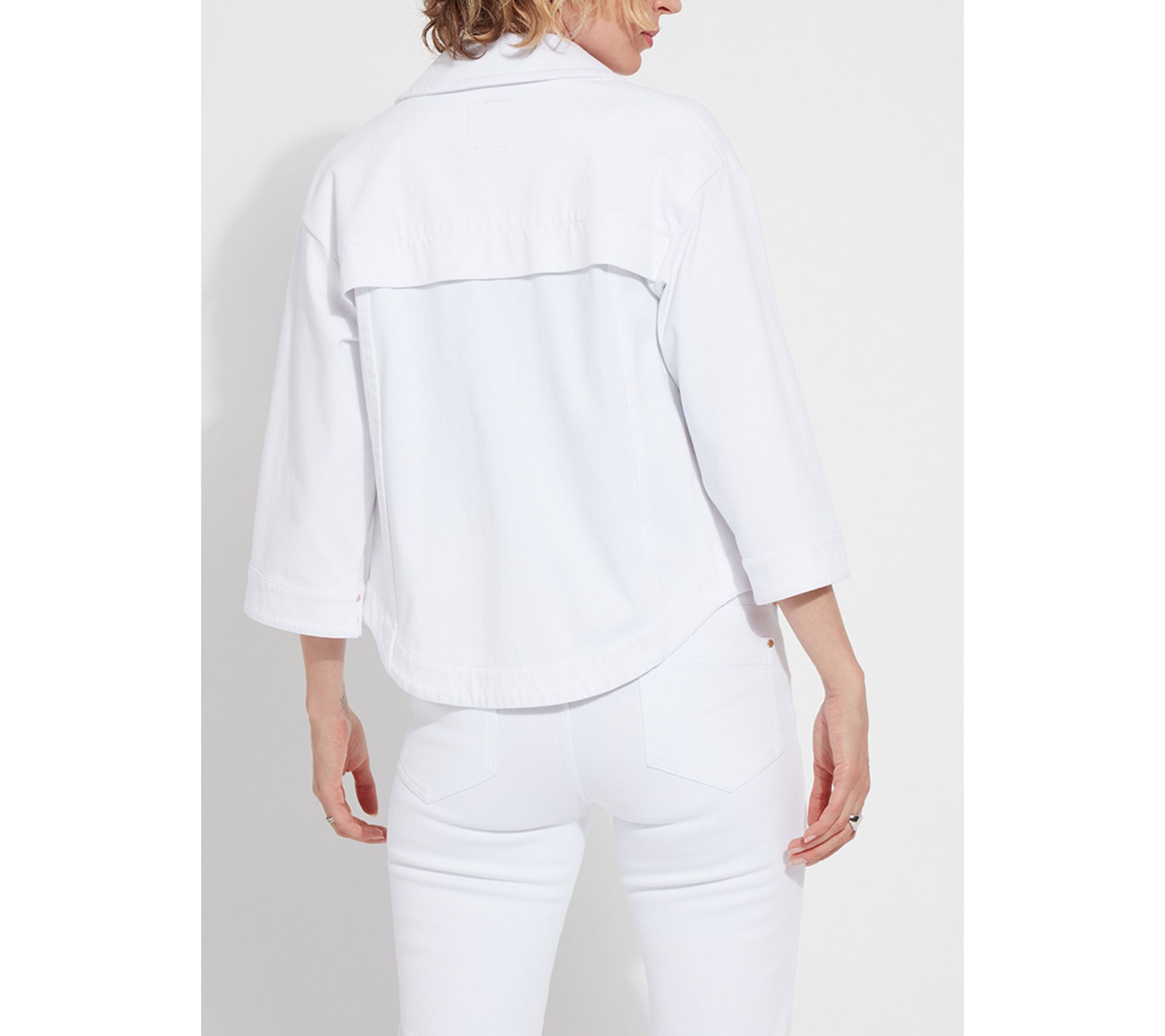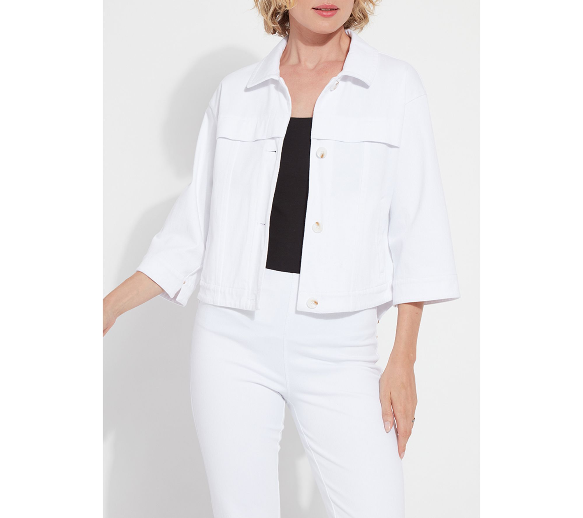 The Remi three-quarter sleeve denim jacket keeps you ready for everything from outdoor brunches to late-night strolls. With its cropped, boxy shape, relaxed fit, and touch of stretch, it layers easily over any outfit -- especially flowing pants or classic jeans -- so you can move through your day in comfort and style. From Lysse New York.
