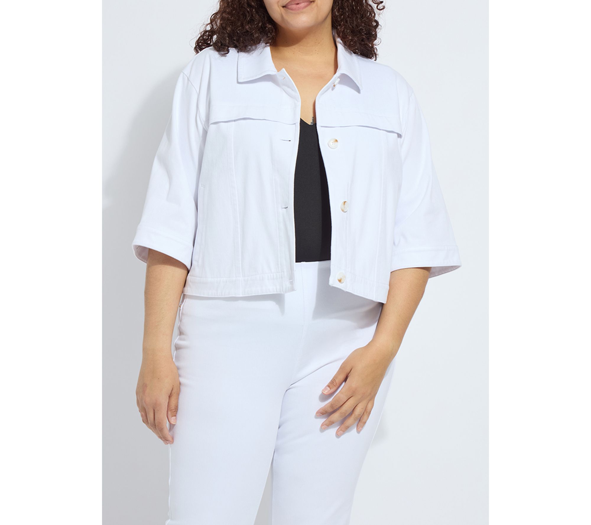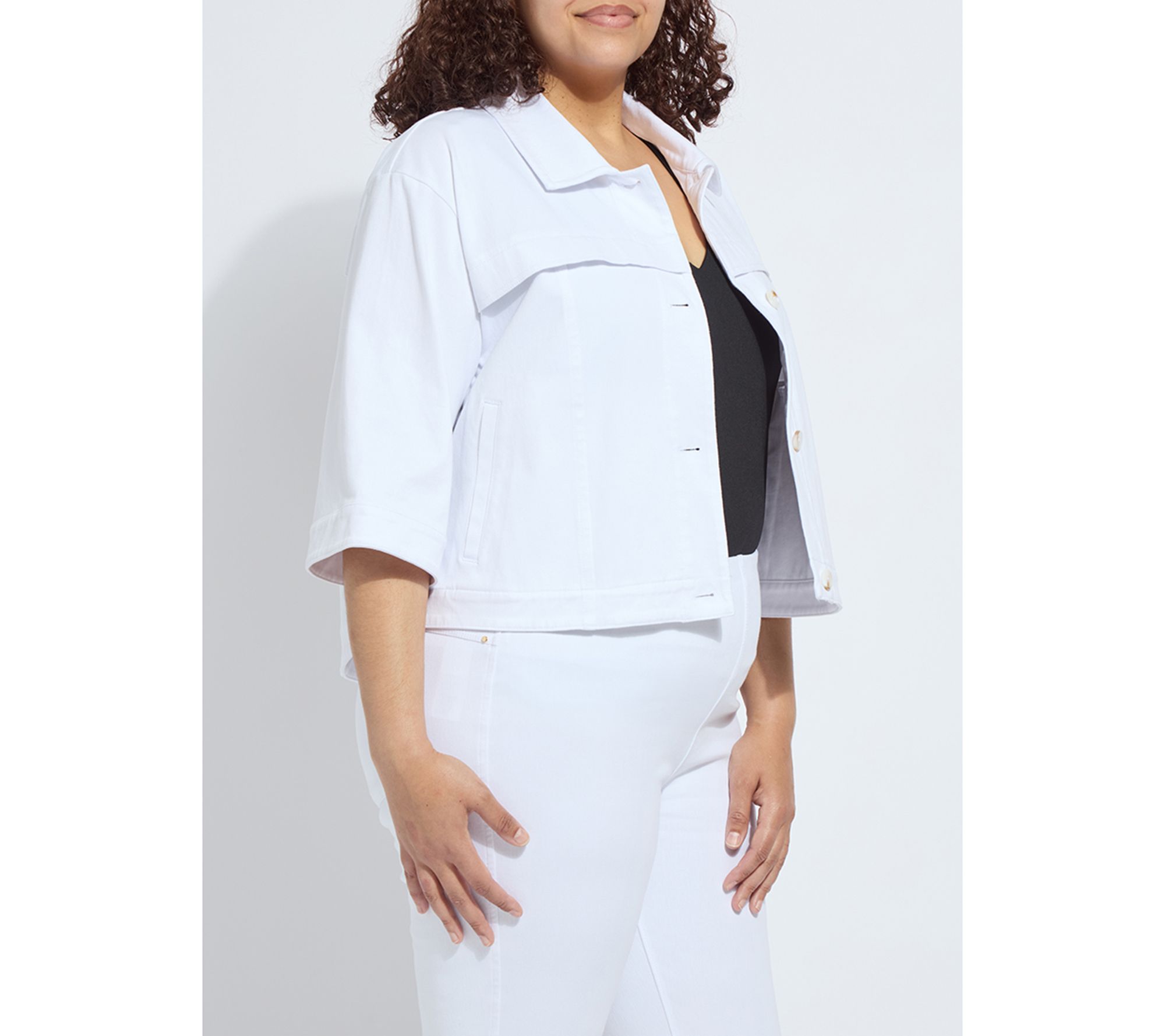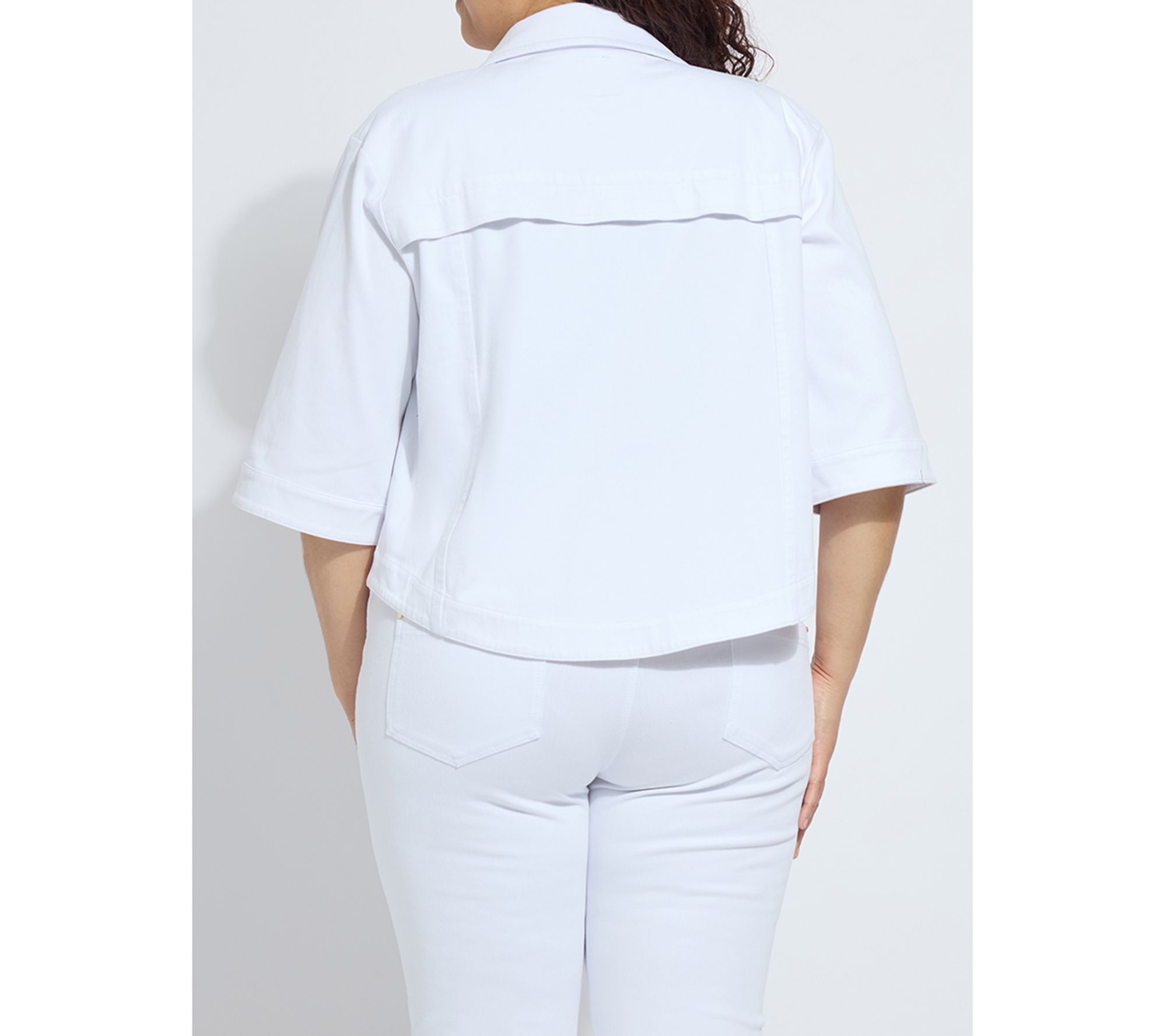 The Remi three-quarter sleeve denim jacket keeps you ready for everything from outdoor brunches to late-night strolls. With its cropped, boxy shape, relaxed fit, and touch of stretch, it layers easily over any outfit -- especially flowing pants or classic jeans -- so you can move through your day in comfort and style. From Lysse New York.