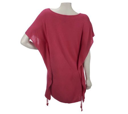 Explore the seemingly infinite styling possibilities when you wear this sweater with side ruching. Adjustable drawstrings on each side and a boat neckline make this top perfect for layering. From M by Marc Bouwer.
