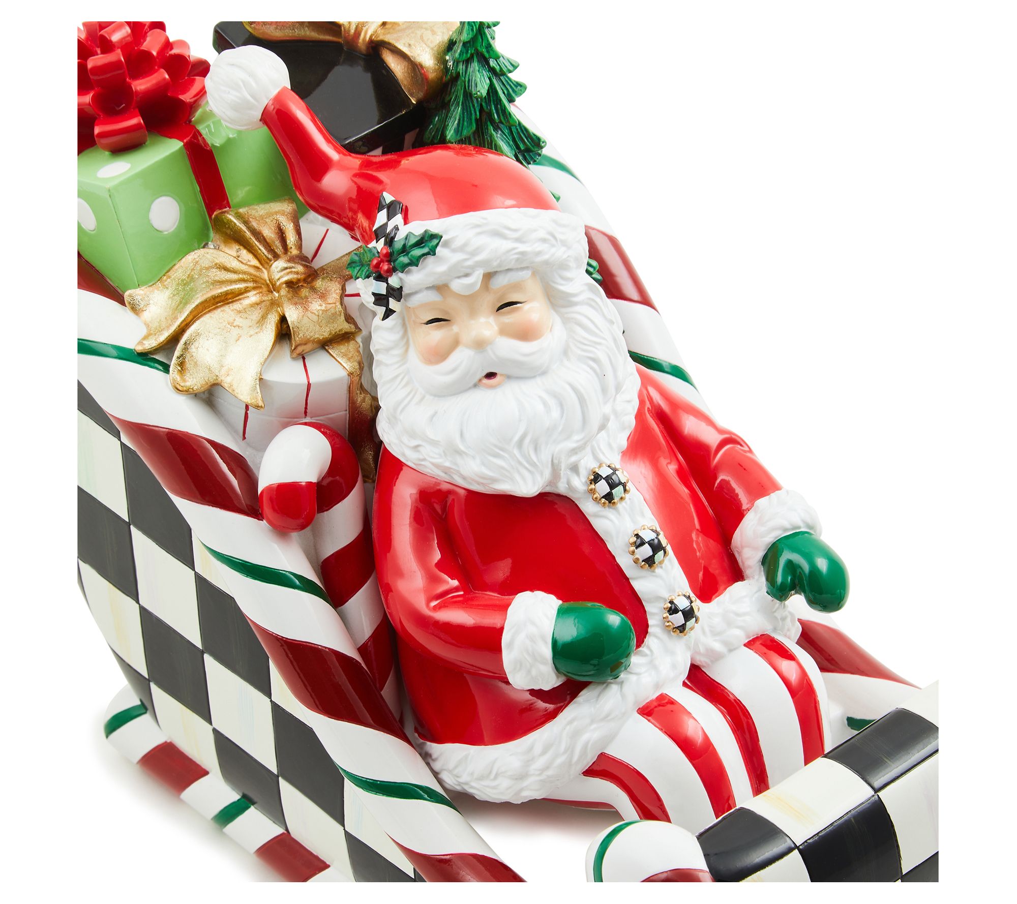 He's on his way! When holiday decorating calls for a little extra sparkle, this illuminated Santa brings cheer to mantels, dining tables, or cozy nooks with its lively details and presents galore. The gentle light and Santa's winsome smile welcomes friends and creates warm, joyful moments all season long. From MacKenzie-Childs.