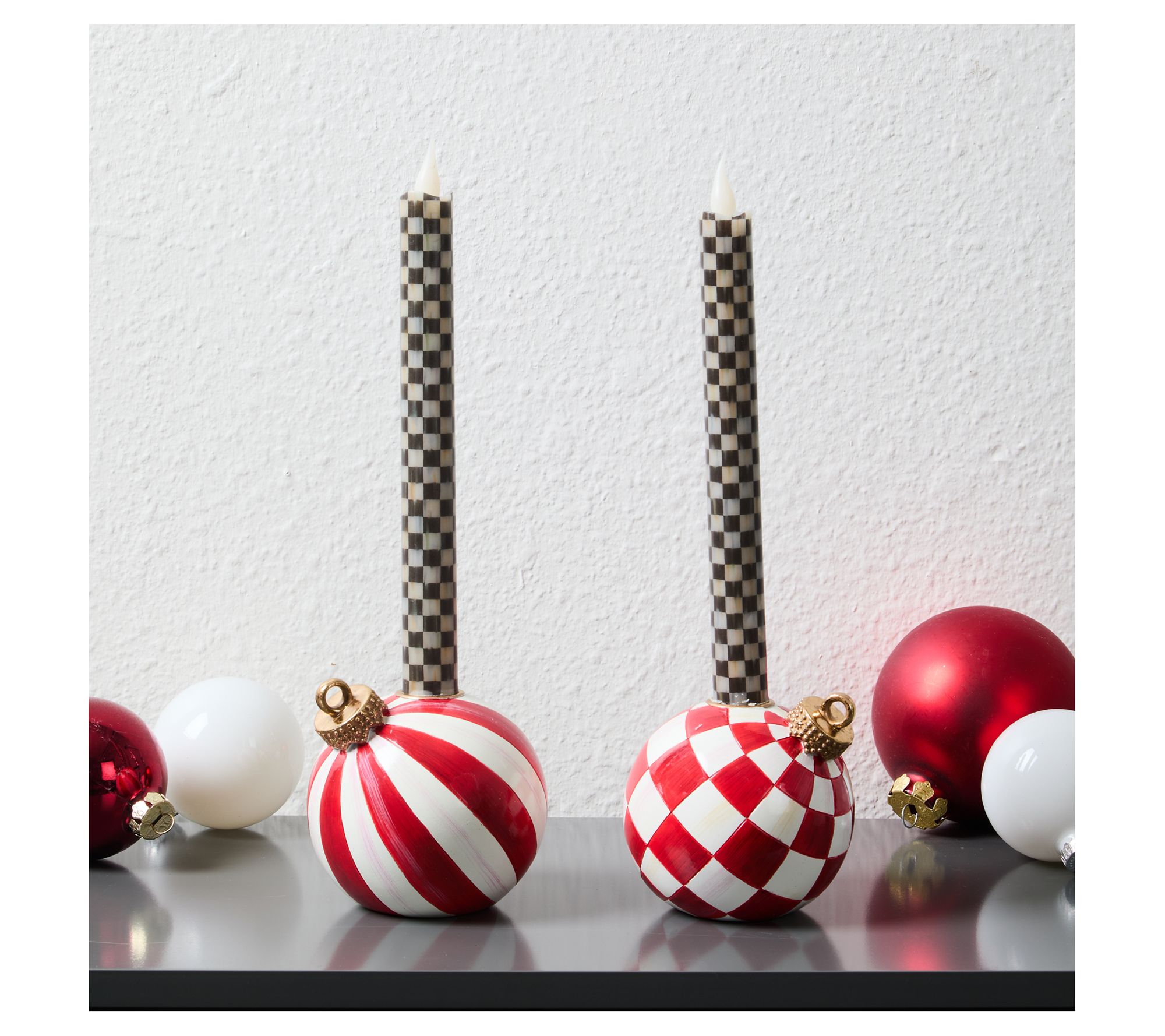 MacKenzie - Childs Set of 2 Ornament Candle Holders and Flicker Tapers