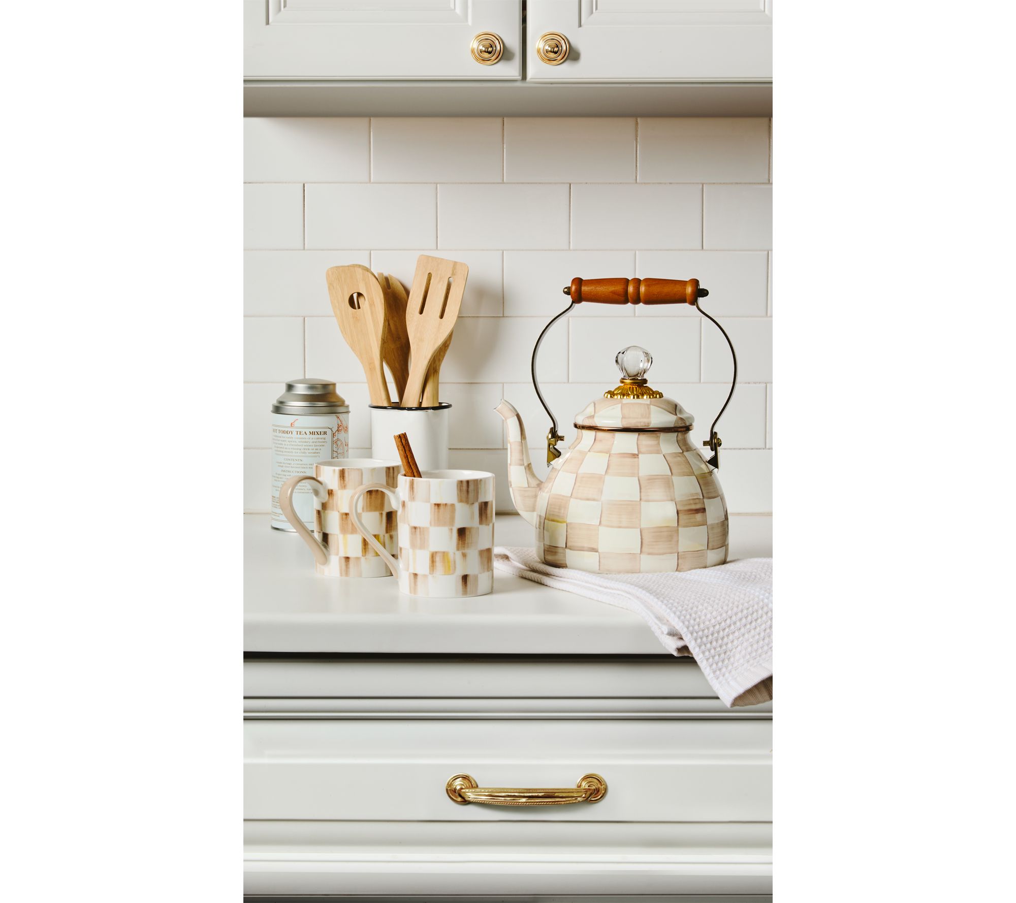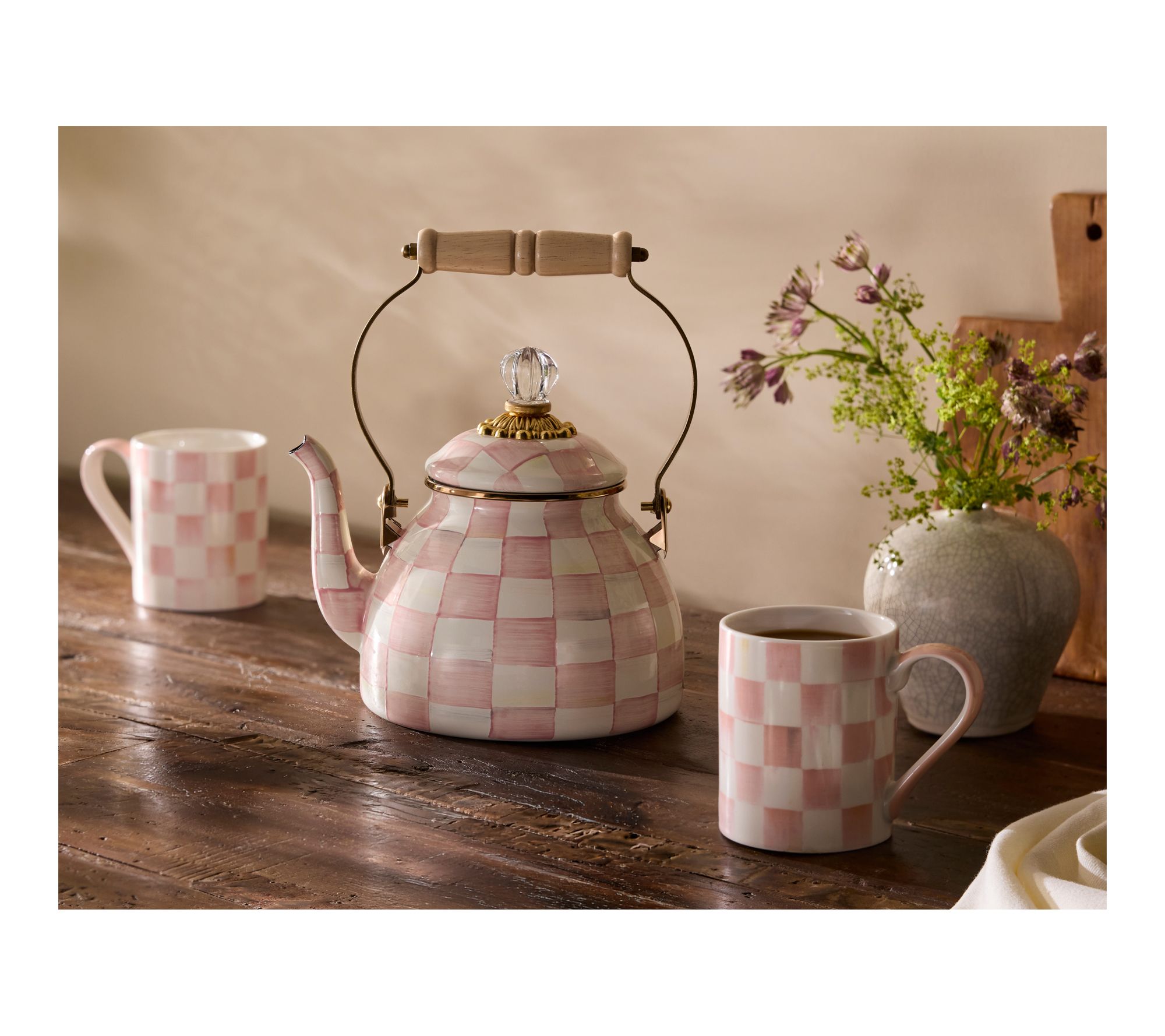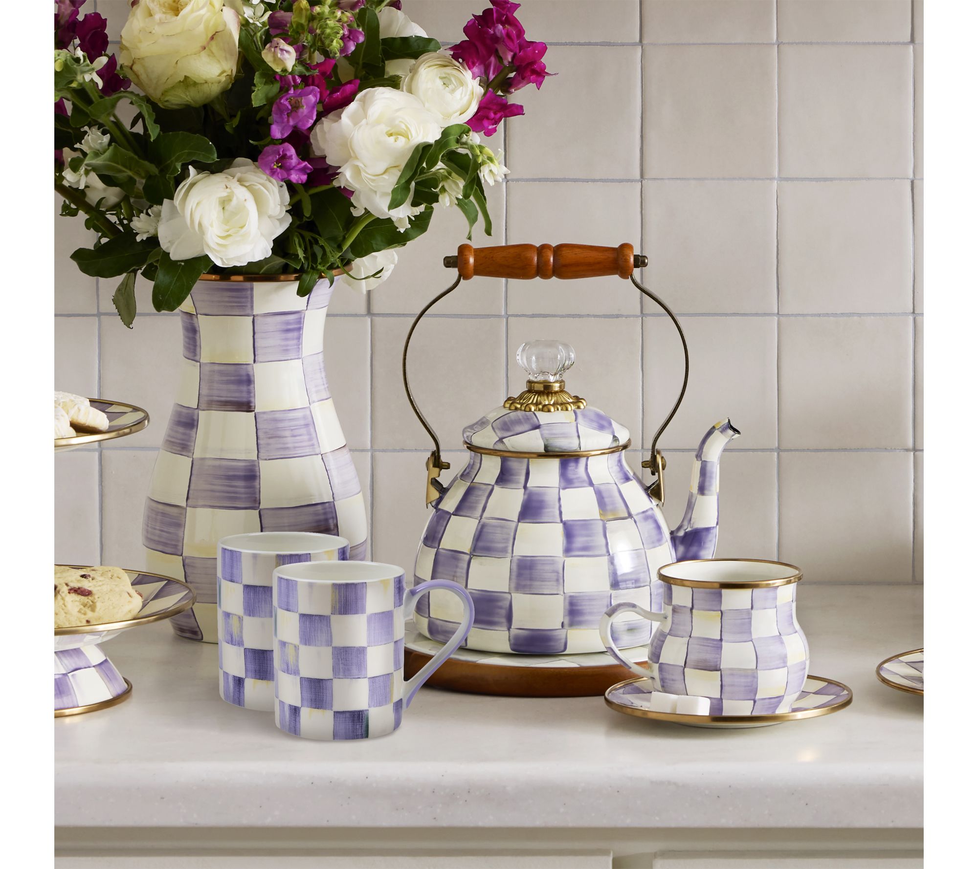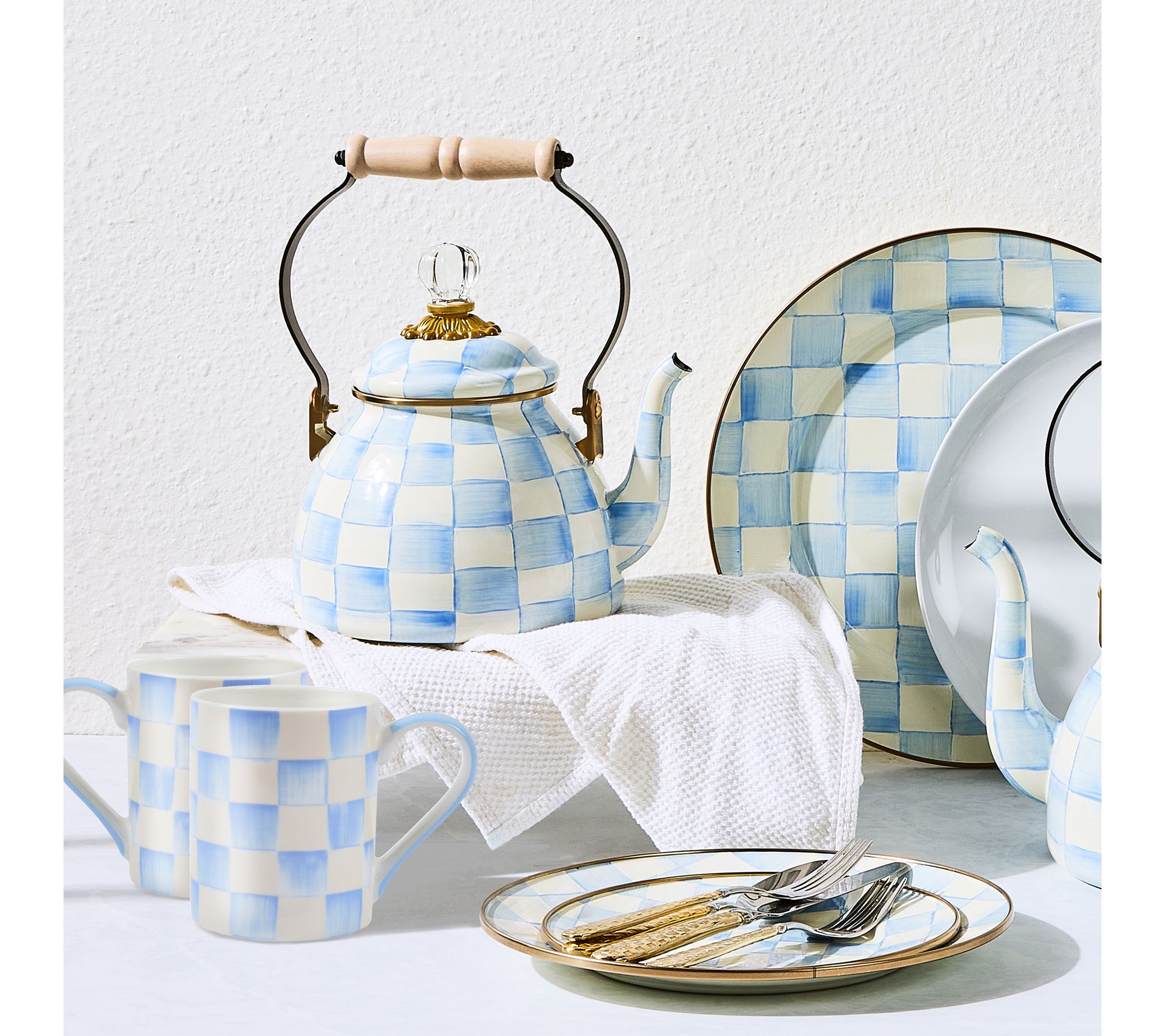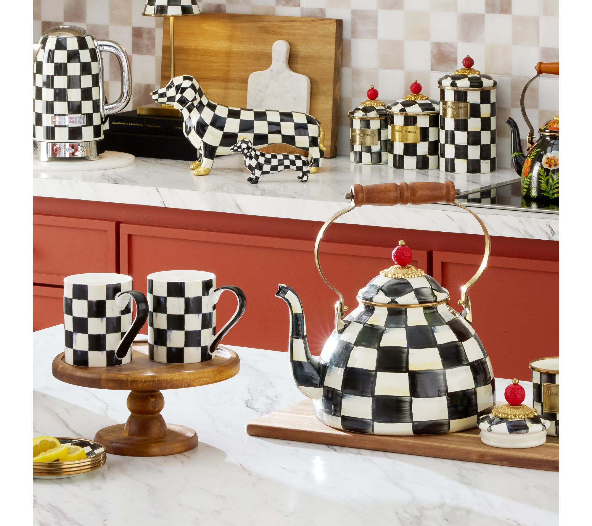 Something's brewing!! From celebrities to influencers to your most stylish SIL, everyone’s fallen lid over heel for the cottagecore magic of MacKenzie-Childs. This 2-qt enamel tea kettle and matching porcelain mugs will turn your home into the most popular tea house in town! These aren't just kitchen essentials -- they’re countertop eye candy with iconic hand-painted checks that bring color and character to any conversation spot.