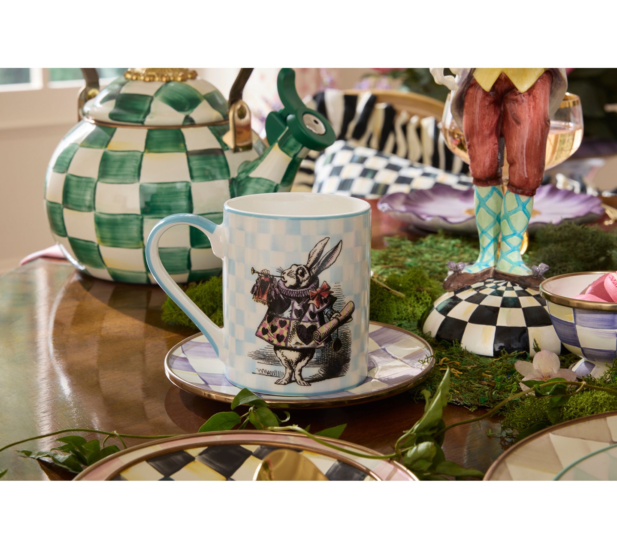 Bring a touch of whimsy to your daily routine with this MacKenzie-Childs porcelain mug inspired by Alice in Wonderland. Its 14-oz capacity is ideal for savoring your favorite teas, coffees, or hot chocolate, while the imaginative design makes every sip feel special. From MacKenzie-Childs.