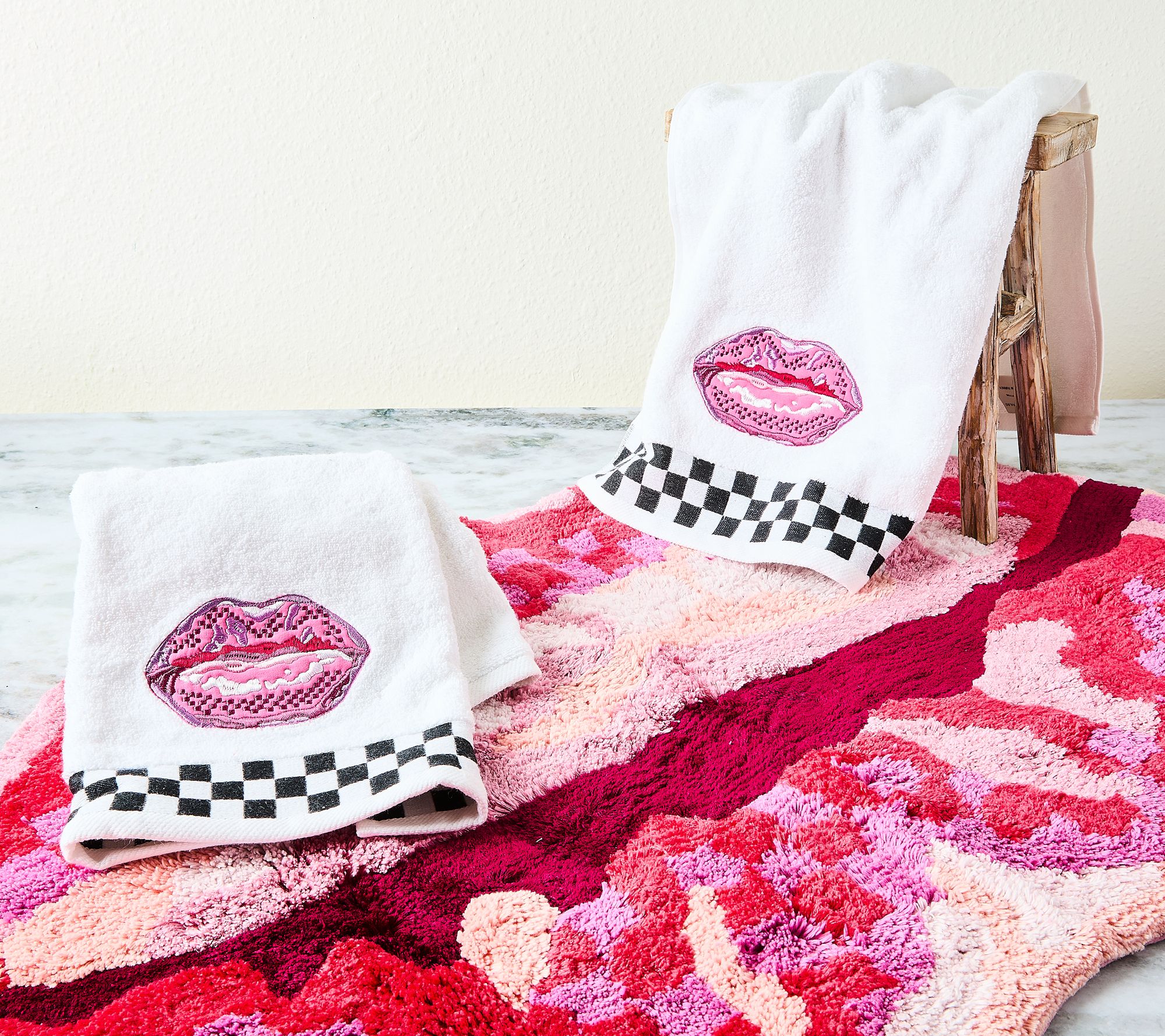 Don't let your style stop at the bathroom door. Put your personal stamp on decor with this bath mat and hand towel set that add charm and personality to your daily routine. From MacKenzie-Childs.