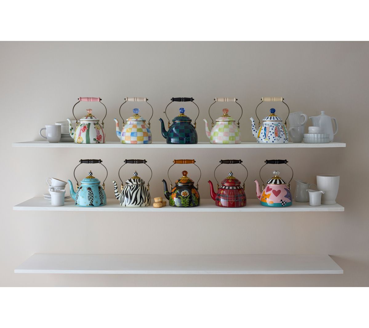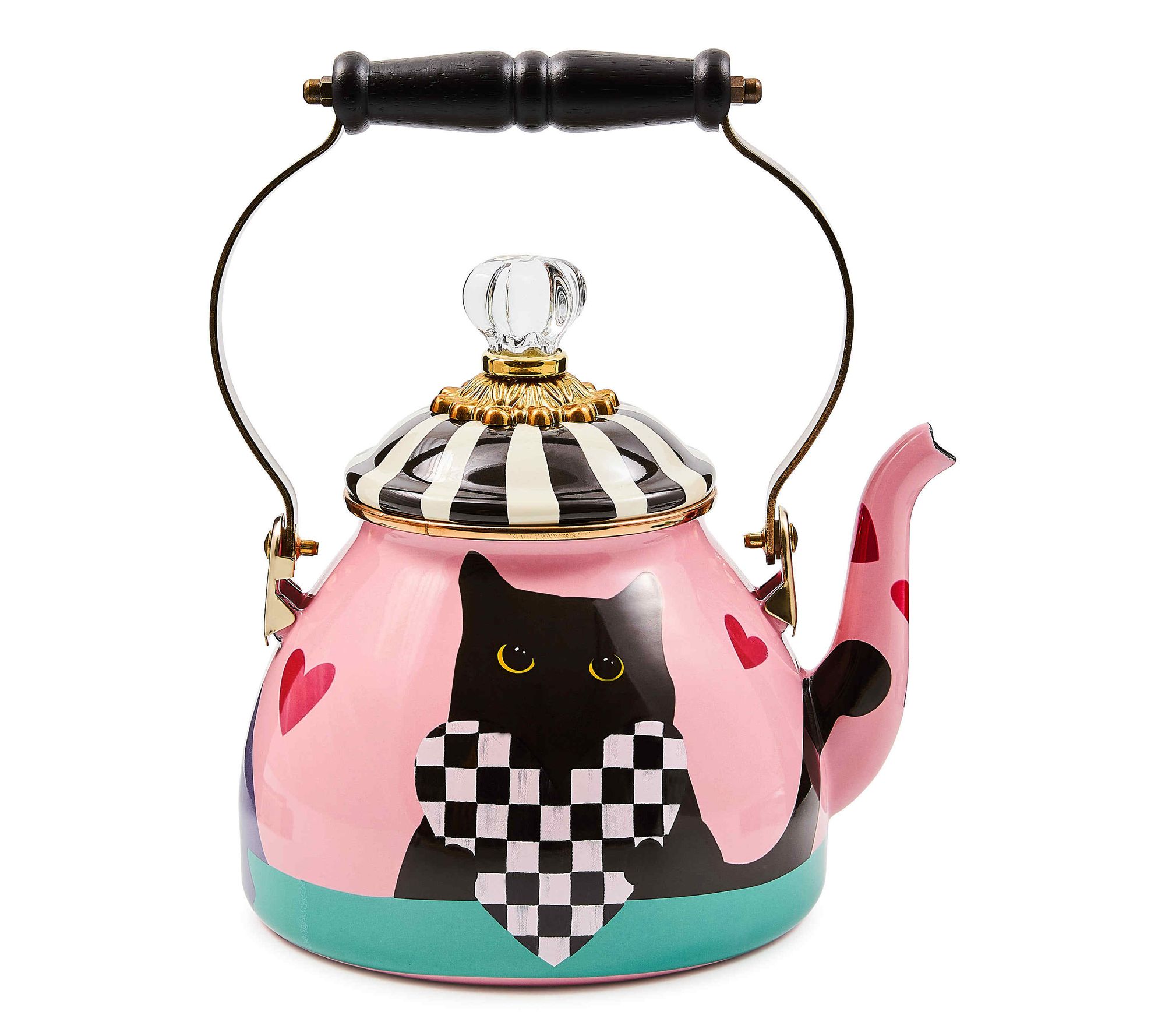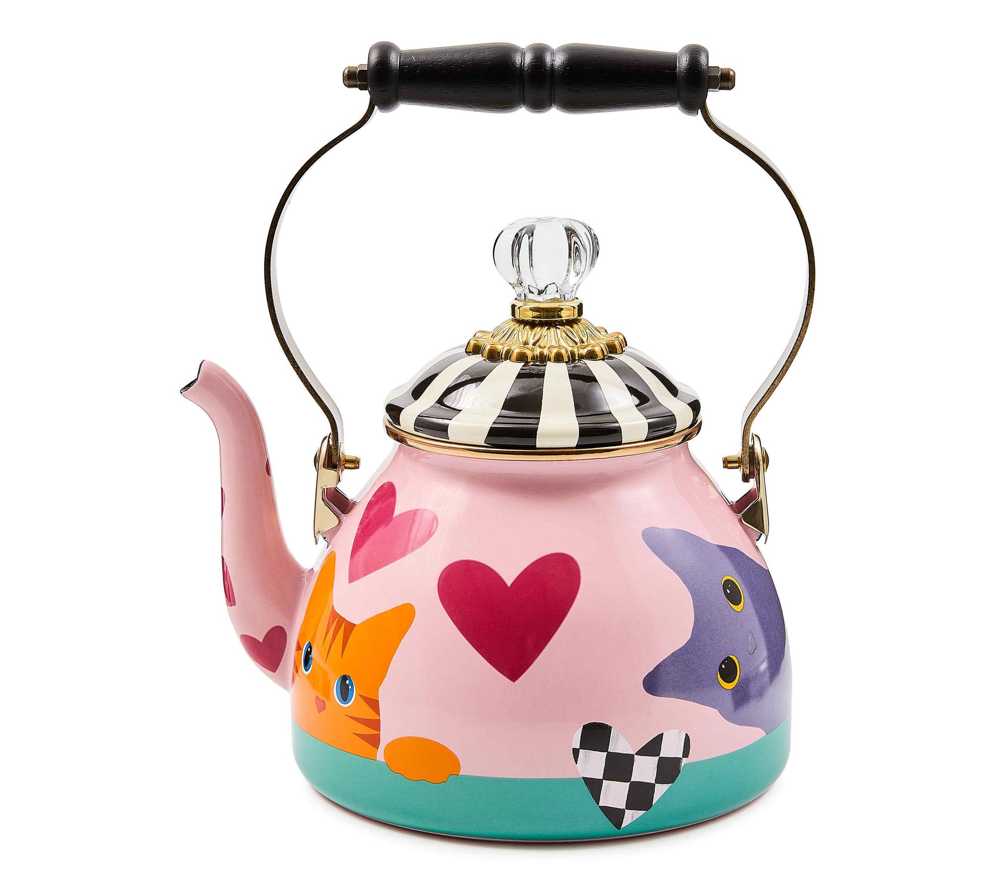 Suit your personalitea with this Cat Love tea kettle from The Tea Kettle Collective by MacKenzie-Childs. The 2-qt design -- with a notable finial on the lid -- is bubbling over with charm while adding attention-grabbing style to your stovetop. From MacKenzie-Childs.
