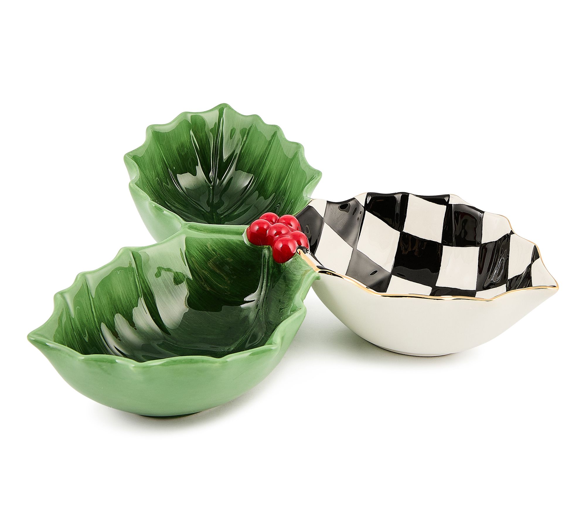 MacKenzie- Childs Holly Leaf Tri-Dish