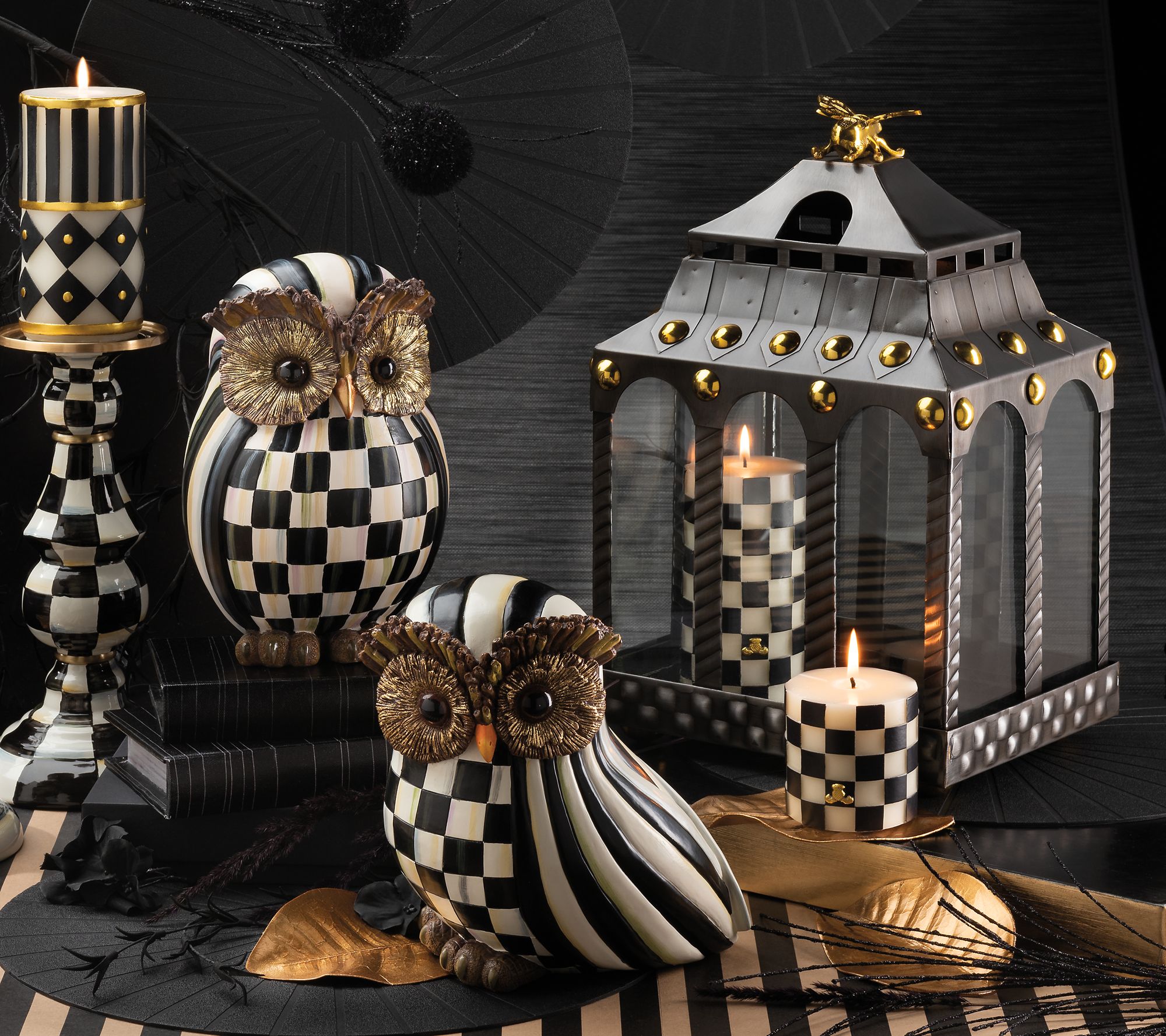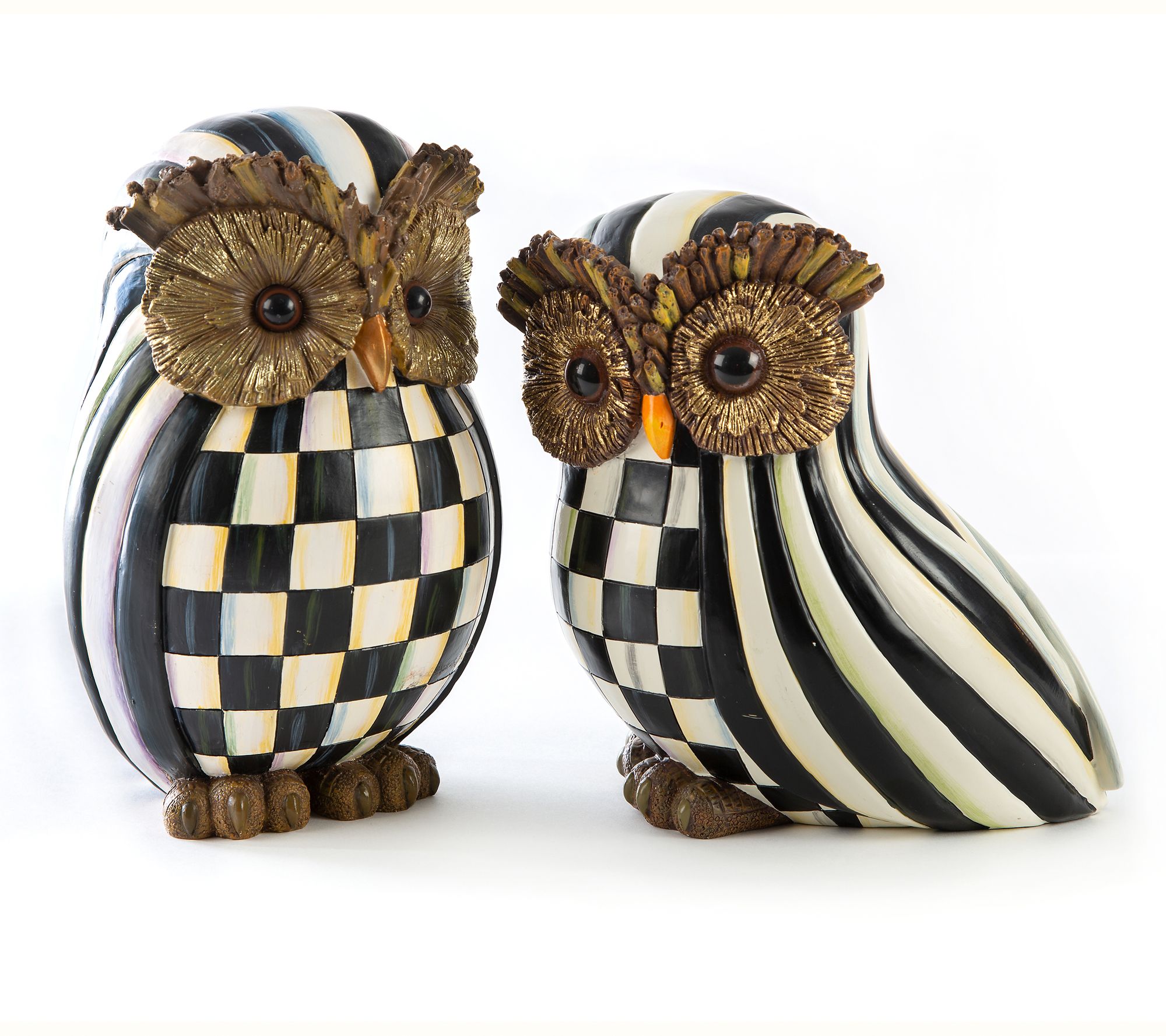 This whimsical set of owl figurines are charming accents that bring a playful-yet-sophisticated vibe to any living space. Display this charming, checkered duo on a mantel or bookshelf, where they are sure to catch the eye. From MacKenzie-Childs.
