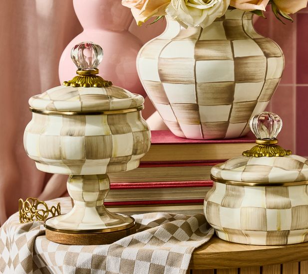 So elegant and majestic, this curiosity pot is the perfect spot to store your treasured trinkets. With a glass knob, hand-painted checked pattern, and goldtone accents, it brings a luxe touch to your home decor. From MacKenzie-Childs.