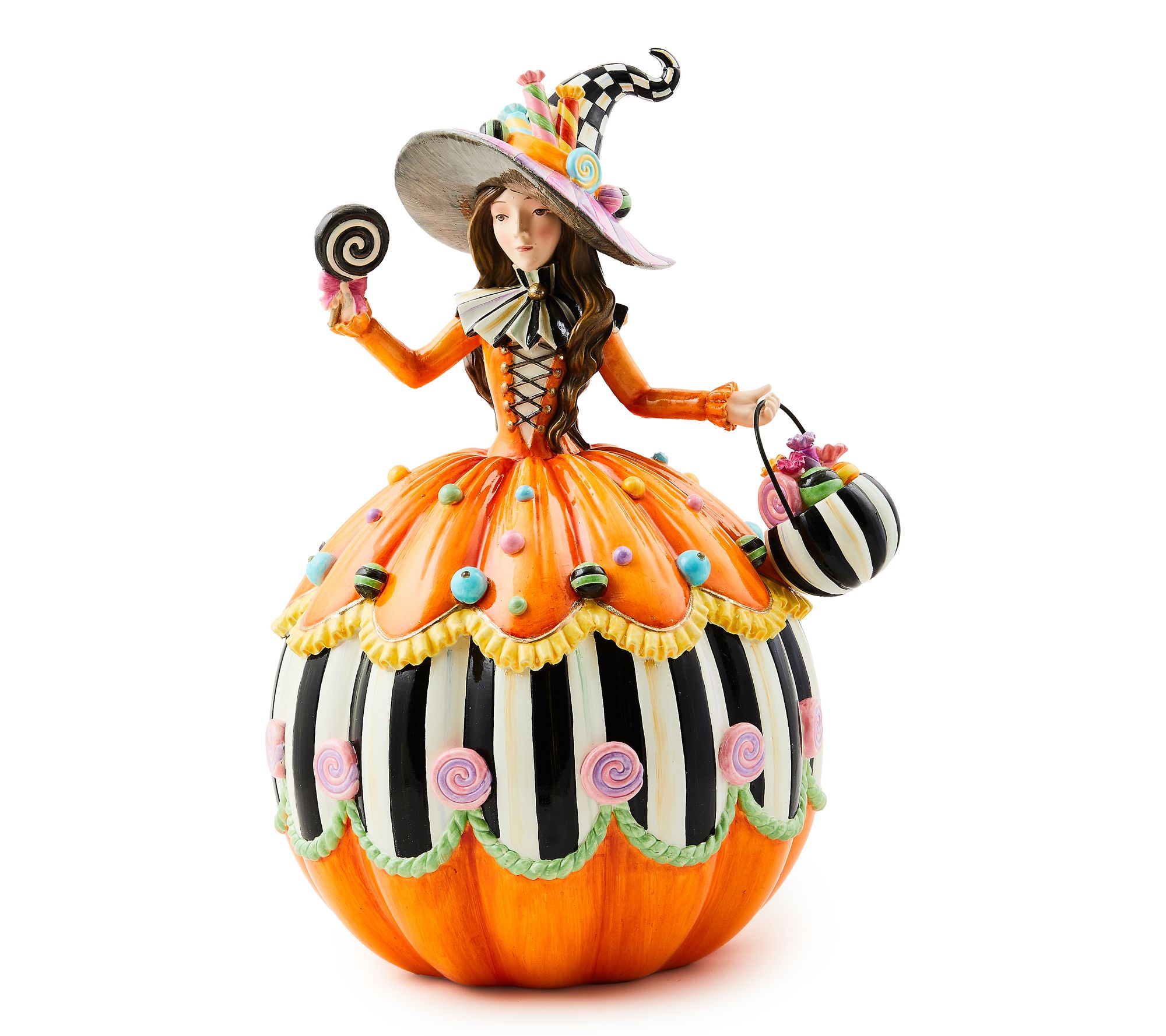 What a treat! Dripping with fun and whimsy, this illuminated witch figurine provides your Halloween decor with a playful and festive feel. From MacKenzie-Childs.