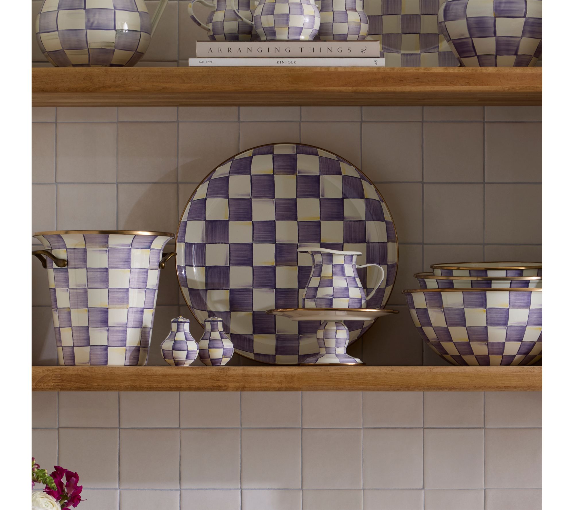 Pairing a playful personality, artistic design, and versatile practicality, this Violet Check abundant bowl stands out stylishly whether it sits on a tabletop or occupies a curio cabinet. Admirers are sure to appreciate its handcrafted details and whimsical pattern. Even when it's empty, this eye-catching piece makes a striking presentation. From MacKenzie-Childs.
