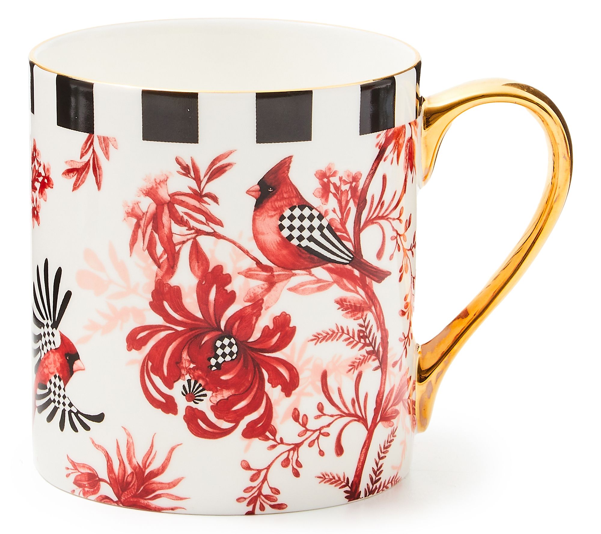 Mornings feel brighter when you sip from this Cardinal Toile Mug, showcasing a vibrant red cardinal perched among florals and finished with a striking goldtone handle. Enjoy your favorite coffee or tea in a piece that brings seasonal cheer and standout style to any table. From MacKenzie-Childs.