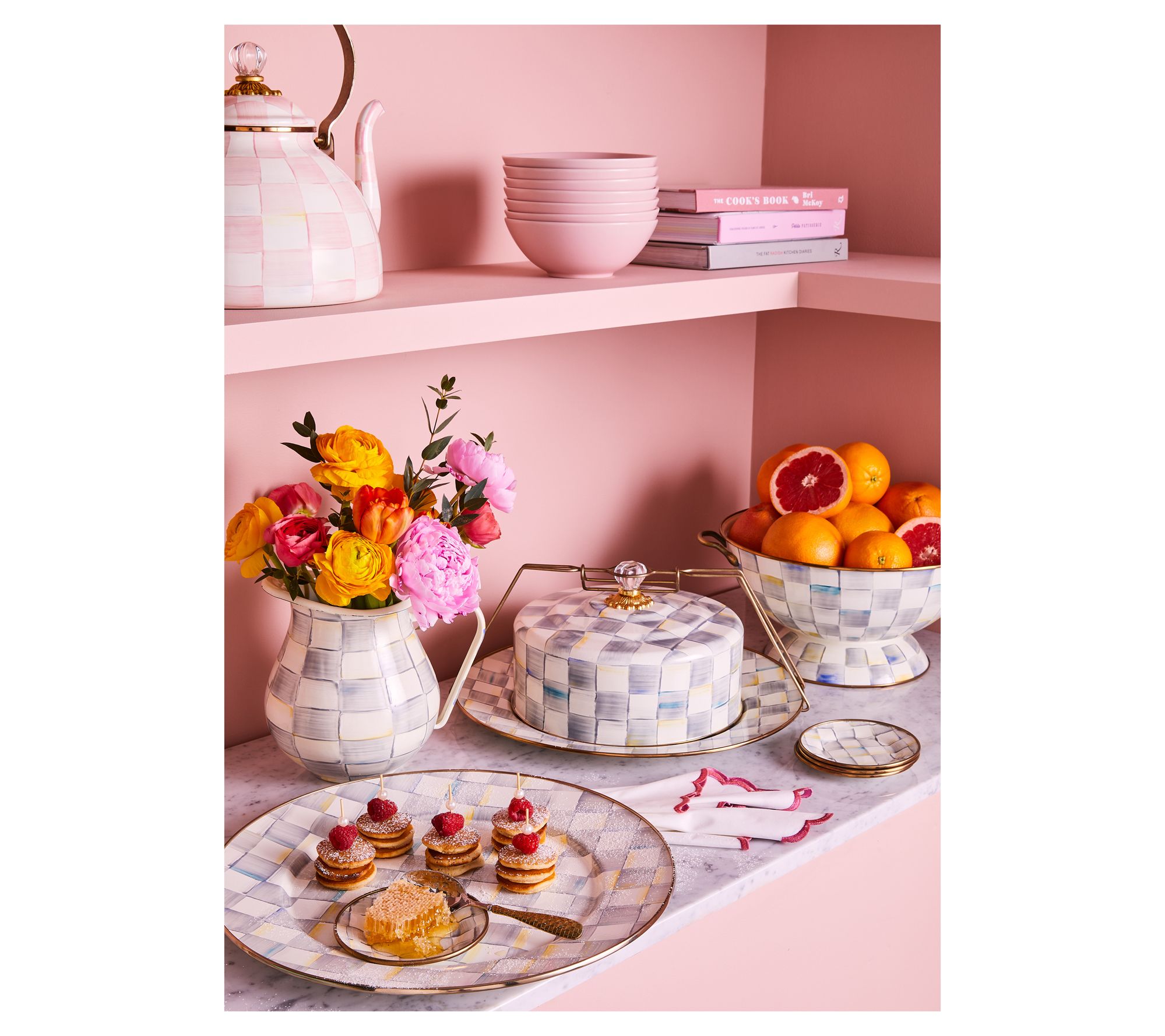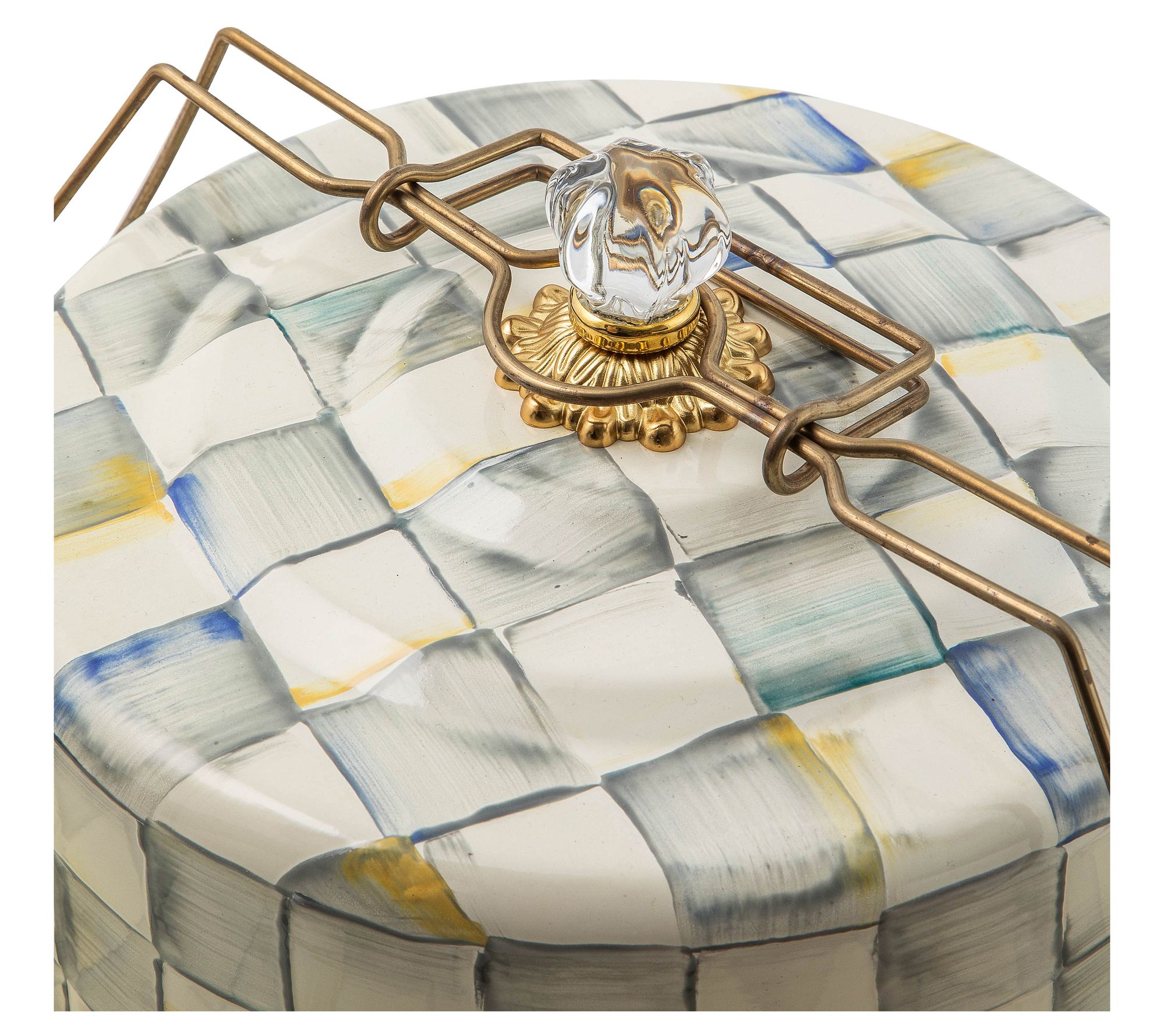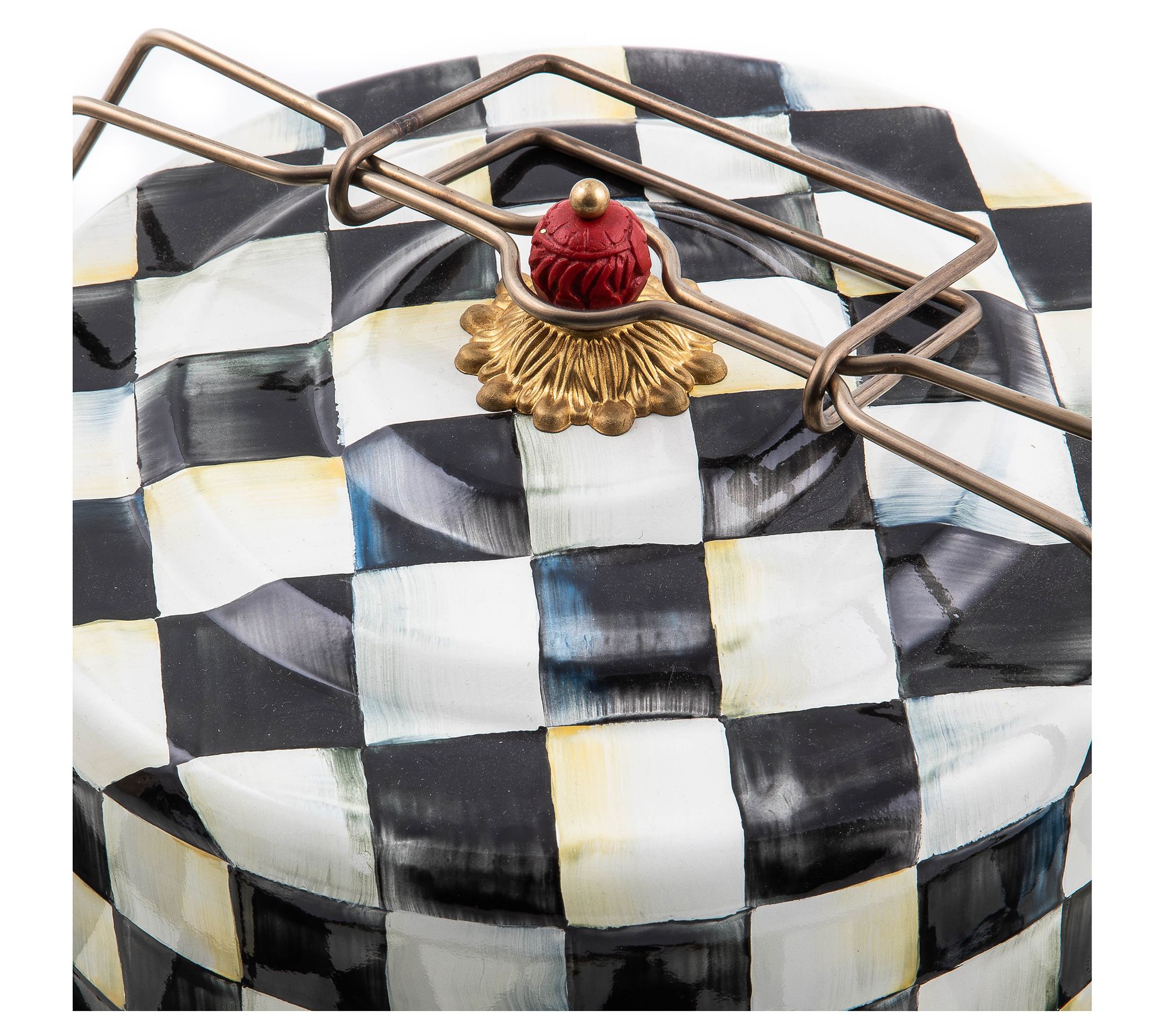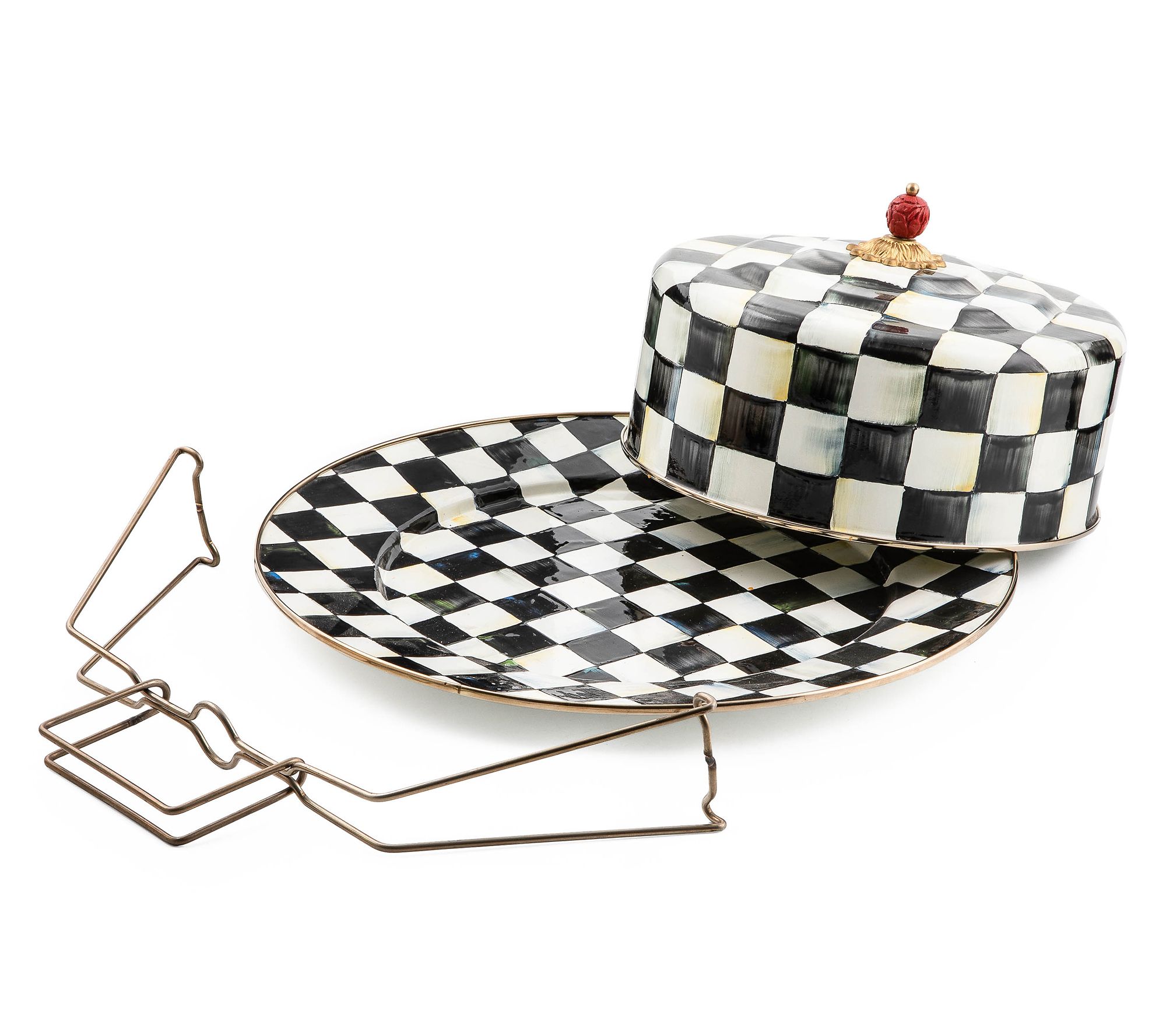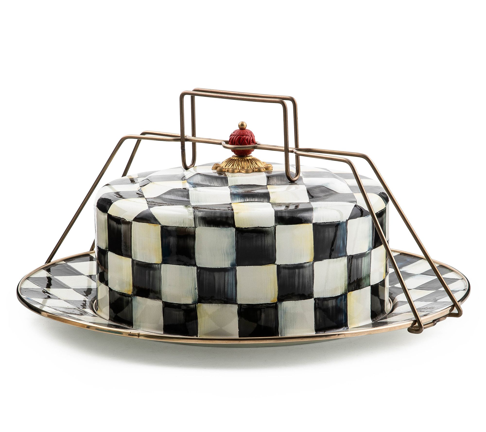 Take your homemade creations to the next gathering with this checkered cake carrier. Whether it's a weekend picnic or a festive holiday party, transport your layered delights safely and stylishly. Effortlessly showcase your baking prowess while adding a charming touch to any occasion. From MacKenzie-Childs.
