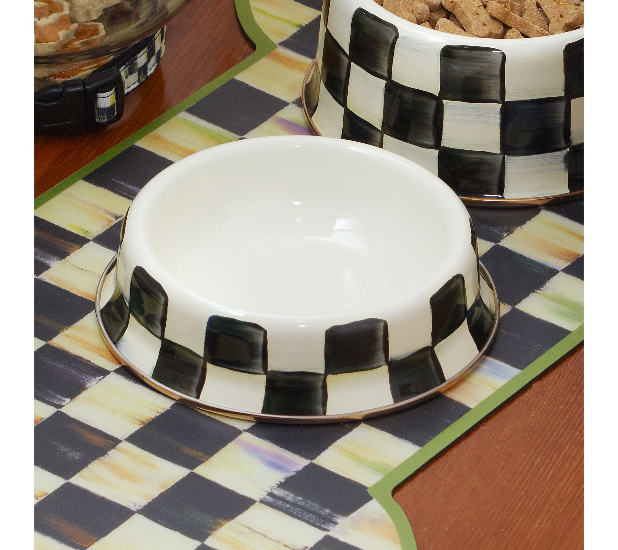 Mealtime becomes a delightful moment for your feline friend with this check cat dish, bringing a touch of whimsy to their daily routine. Whether it's filled with crunchy kibble or a tasty treat, the playful pattern adds charm to your pet's feeding area while making cleanup a breeze. From MacKenzie-Childs.