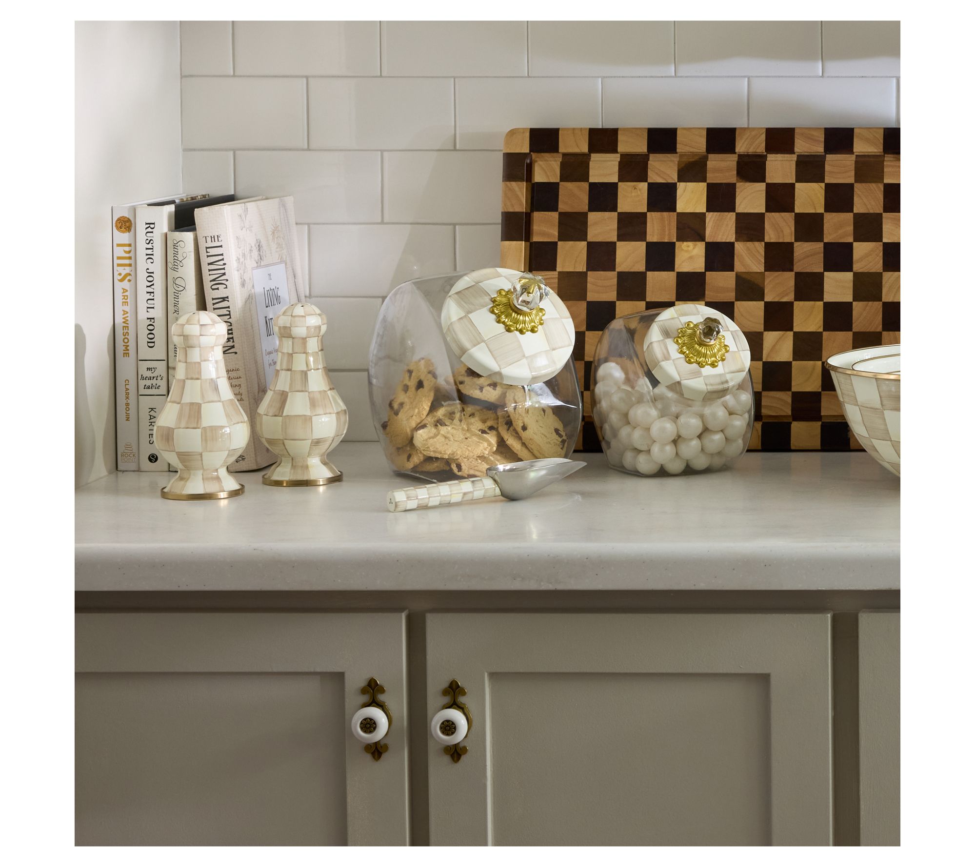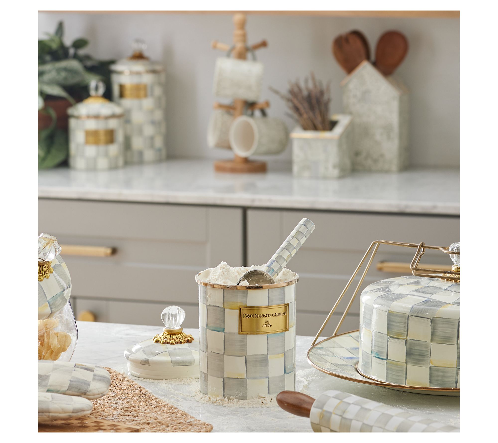 Need a helping hand in the kitchen or at your pet's snack station? This small scoop fits comfortably into any routine, whether you're reaching for baking staples or doling out dog treats. Designed with an enameled handle adorned with hand-painted checks, it adds a touch of elegance to every scoop. Its stainless steel body also ensures durability while maintaining style. Perfectly fitting into your versatile storage containers, this scoop makes everyday tasks delightful. From MacKenzie-Childs.