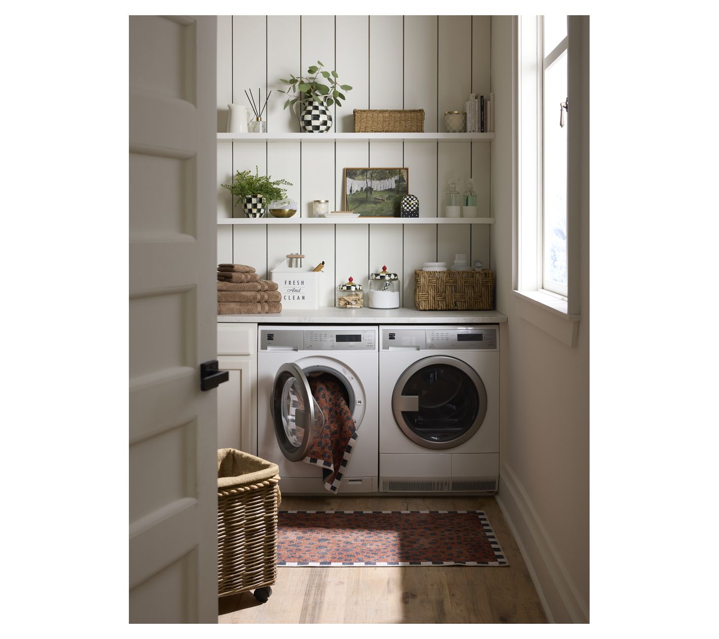 Add a touch of wild elegance to your home with the MacKenzie-Childs Cheetah washable rug. This 2' x 3' rug features a striking animal spots design with a check border, crafted from woven and printed polyester. From MacKenzie-Childs.