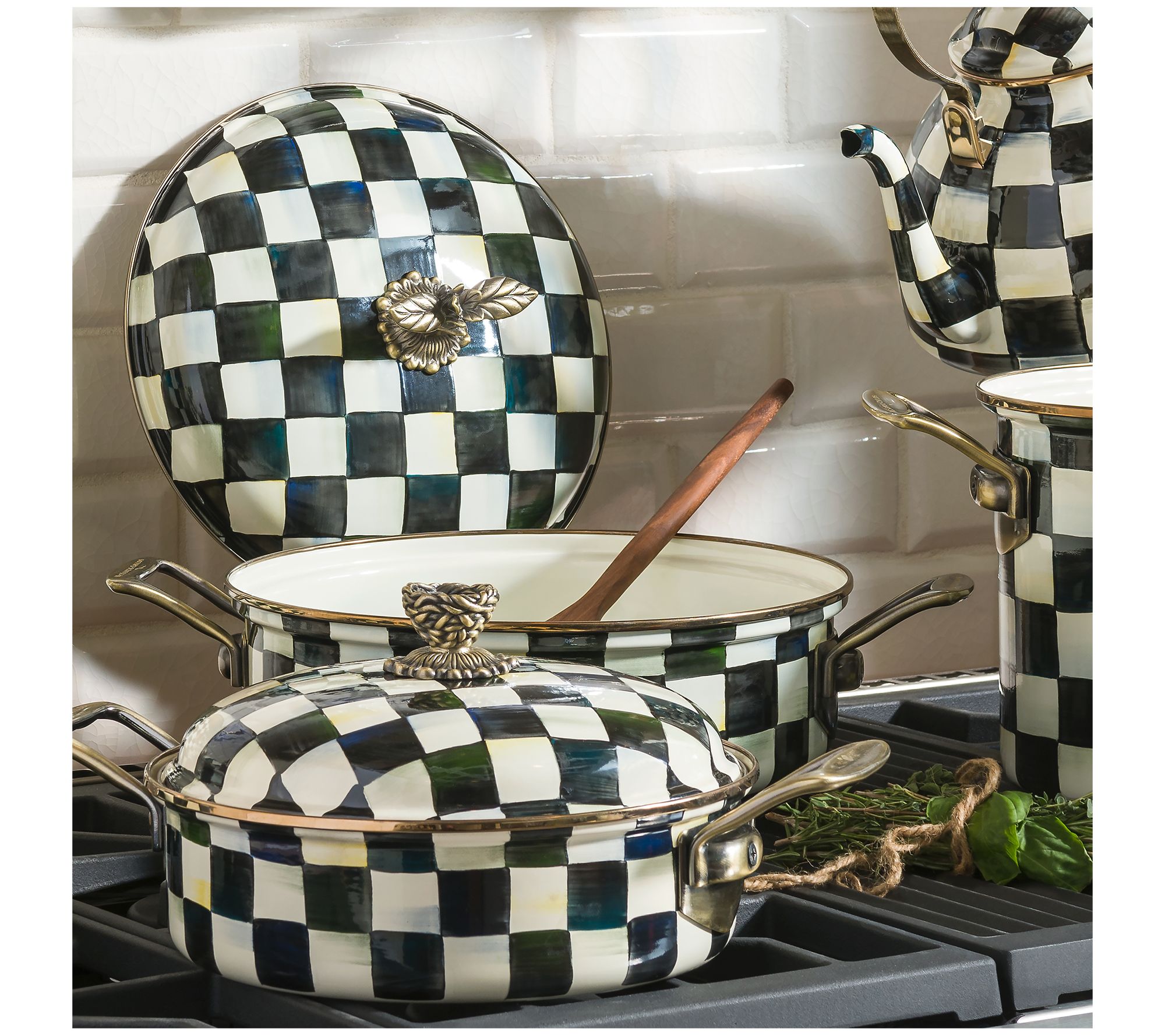 • Hand-glazed, heavy-gauge steel underbody with hand-painted Courtly Check decoration
