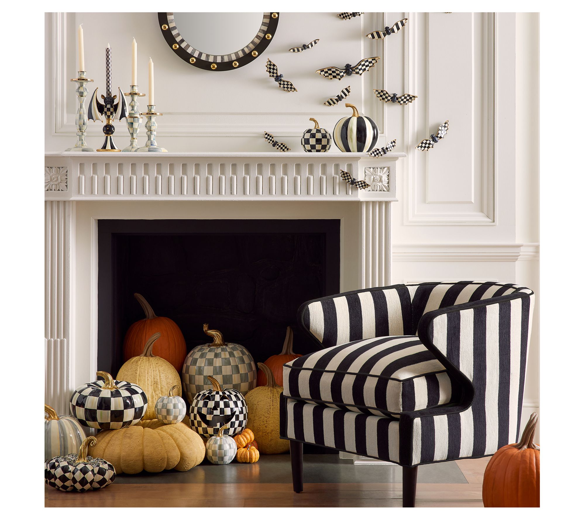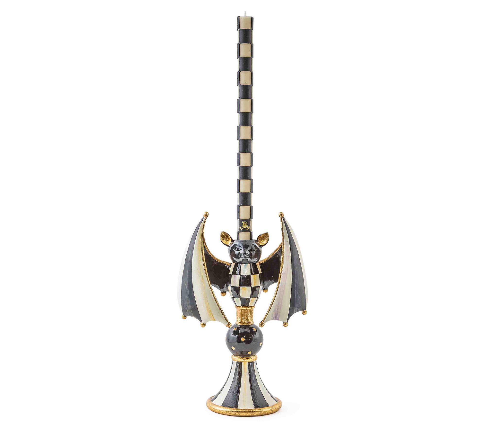 Cave chic! Add a touch of whimsy to your Halloween decor with this checked bat candle holder accented in goldleaf. From MacKenzie-Childs.