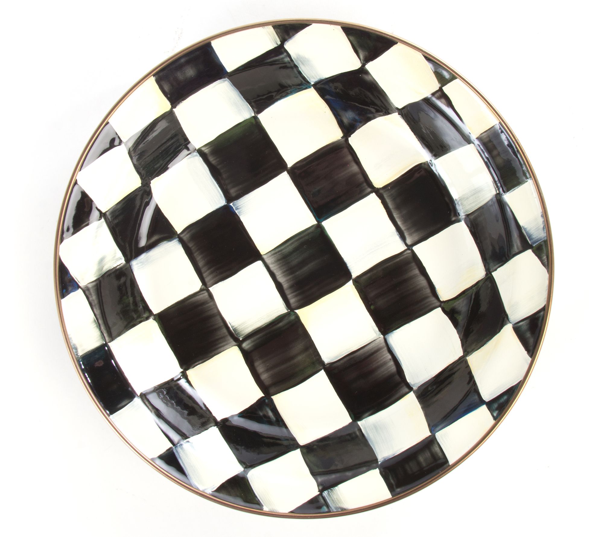 • Heavy-gauge, hand-glazed steel underbody with hand-painted Courtly Checks, rimmed in bronzed stainless steel construction