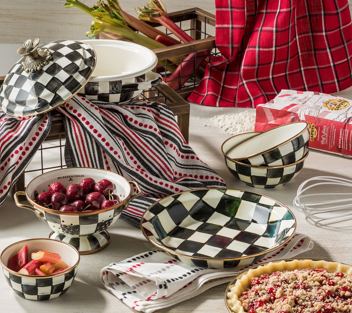 Bake a delicious pie with elegance using MacKenzie-Childs Courtly Check pie plate. Whether crafting a savory pot pie or a berry tart, this hand-decorated enamel plate brings charm and sophistication to your kitchen. From MacKenzie-Childs.