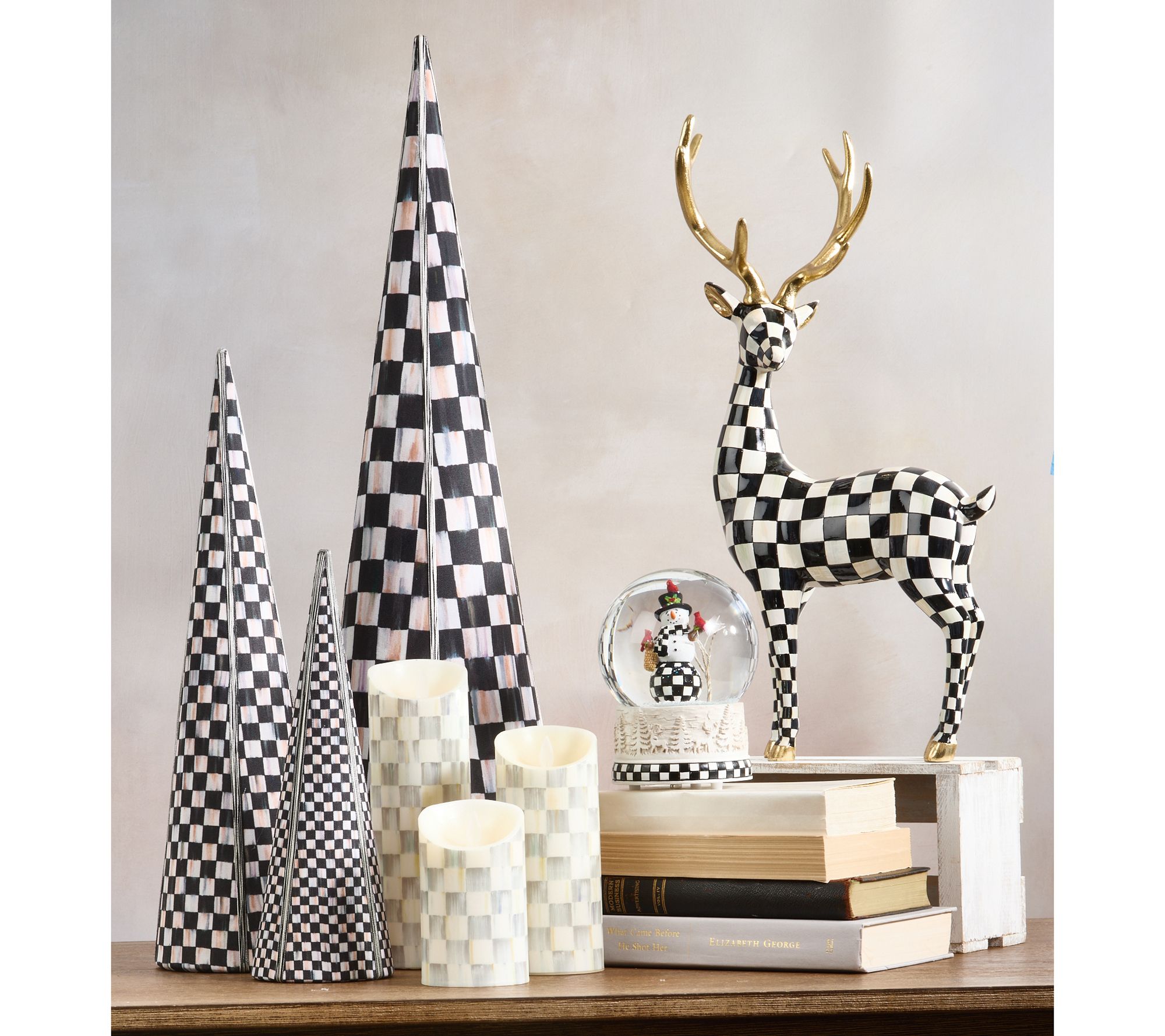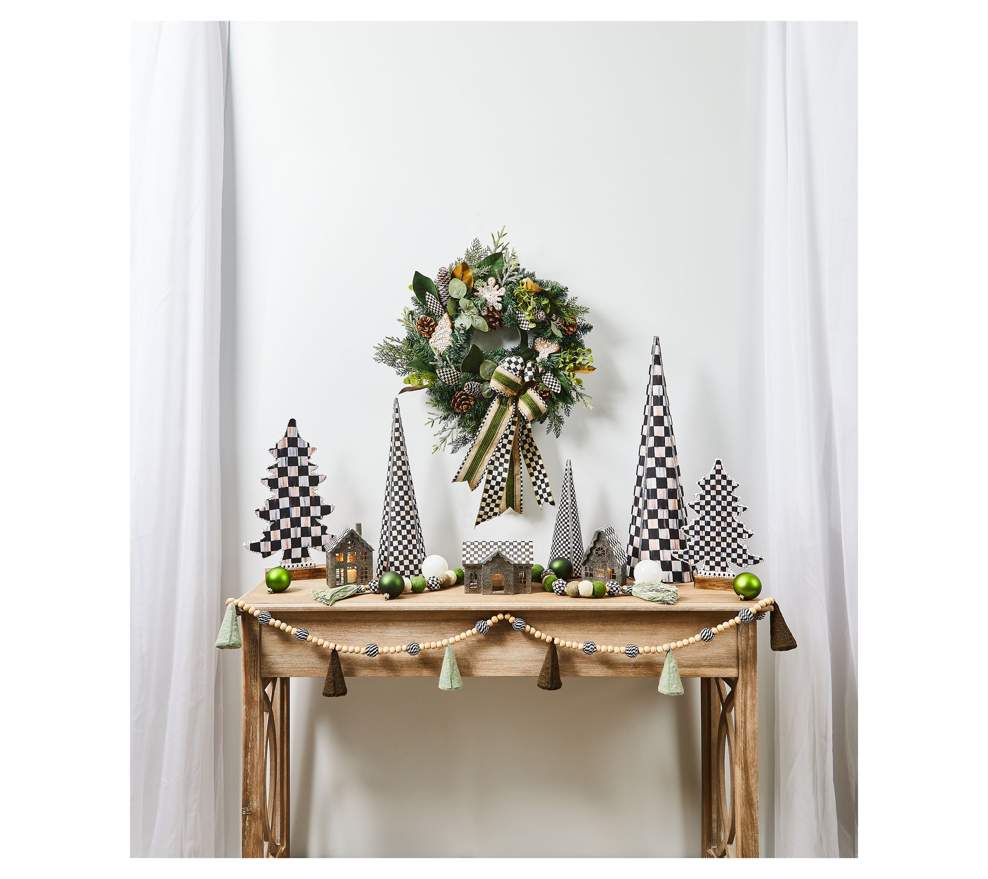 Add a playful twist to your festive decor with these Courtly Cone Trees, featuring a trio of sizes and adorned with iconic Courtly Check patterns that delight from every angle. Group them together for a striking centerpiece or scatter them throughout your space to bring cheer to every corner. From MacKenzie-Childs.
