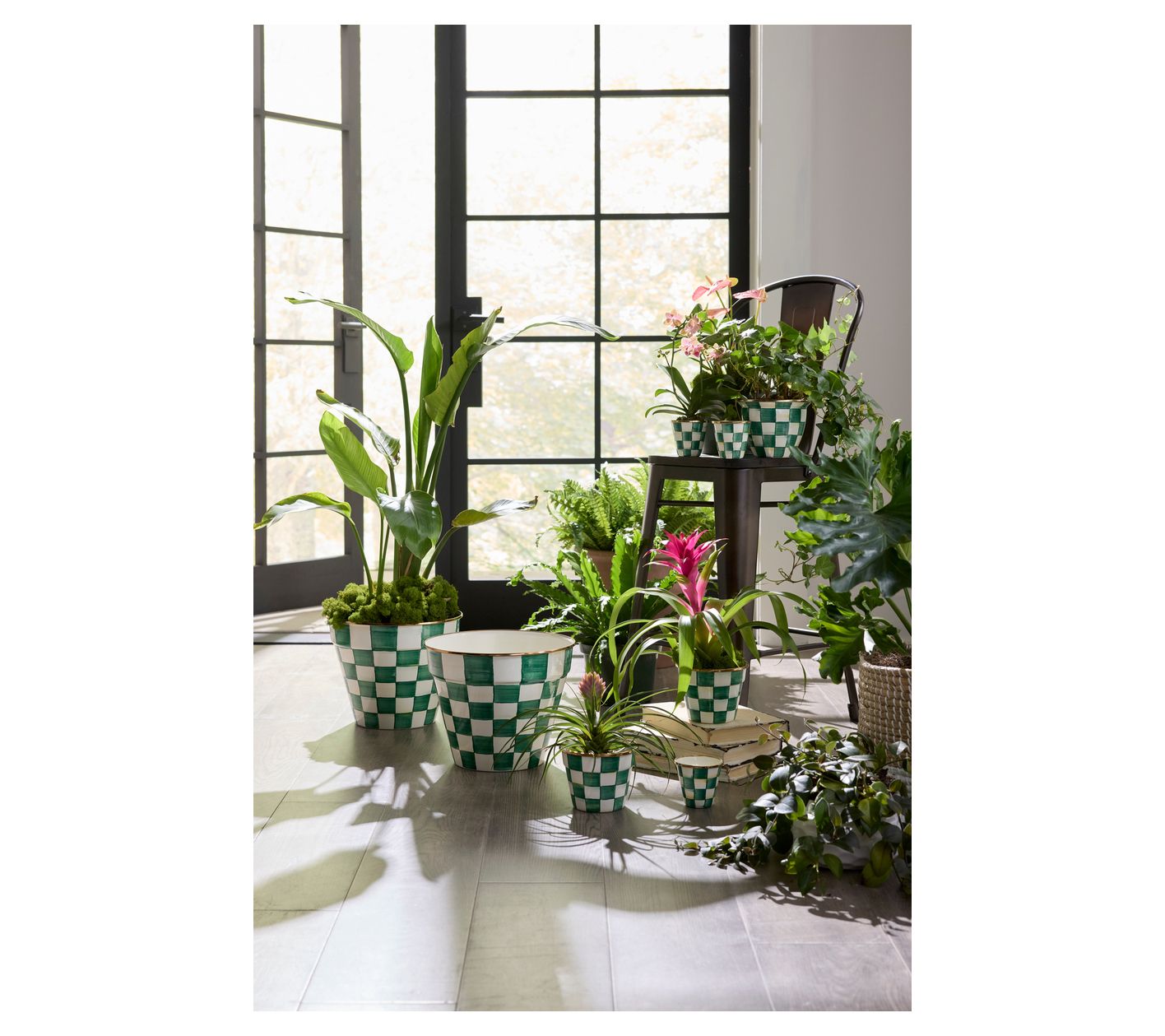 Bring a splash of fresh green into your kitchen with this charming trio of herb pots. Just perfect for a mini herb garden, their hand-painted emerald check patterns exude elegance and vibrancy. Each pot is crafted from heavy-gauge steel and rimmed with stunning bronzed stainless steel, making them as durable as they are beautiful. Placed together or apart, they're sure to enhance any space with a touch of nature's beauty. From MacKenzie-Childs.