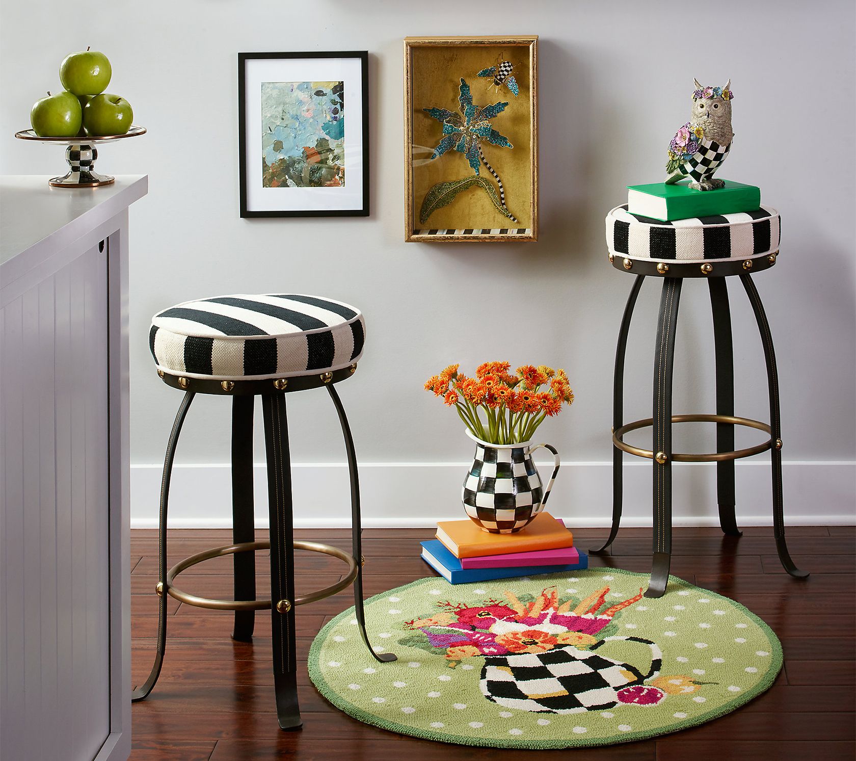 MacKenzie-Childs Flatiron Black Stripe Bar Stoo l