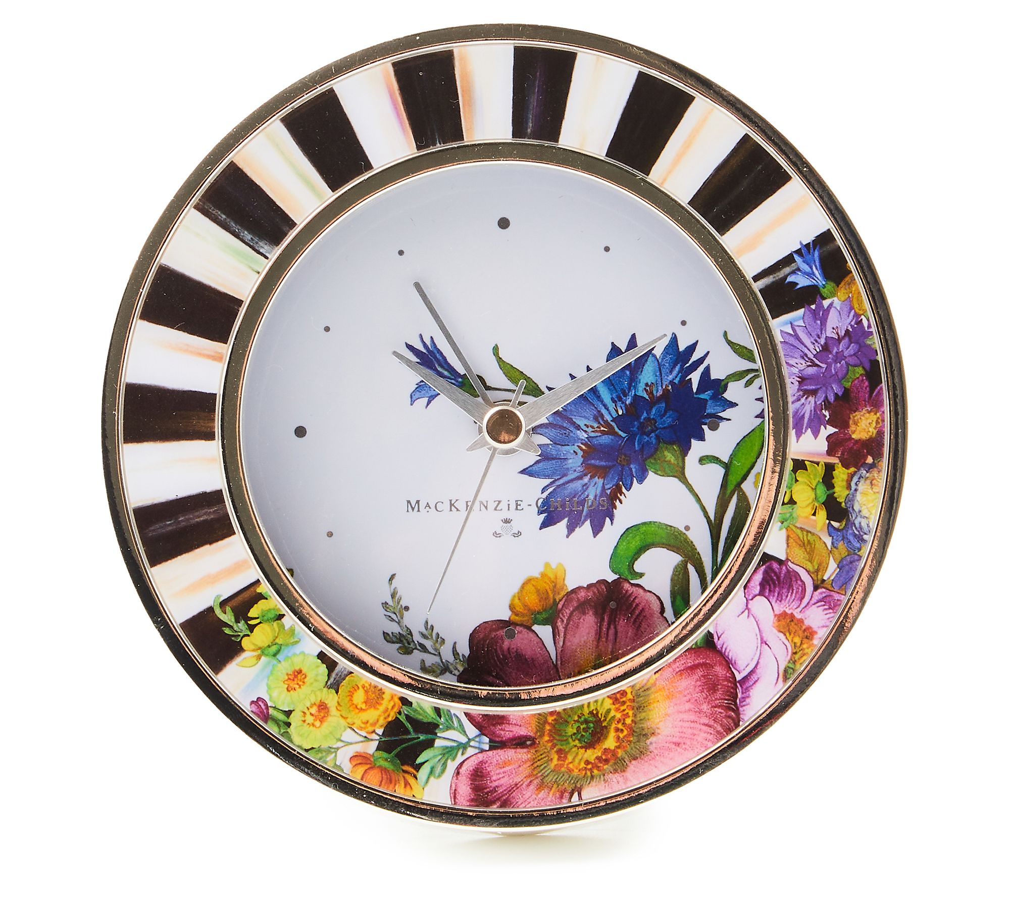 MacKenzie-Childs Flower Market Silver Plated Round Desk Clock