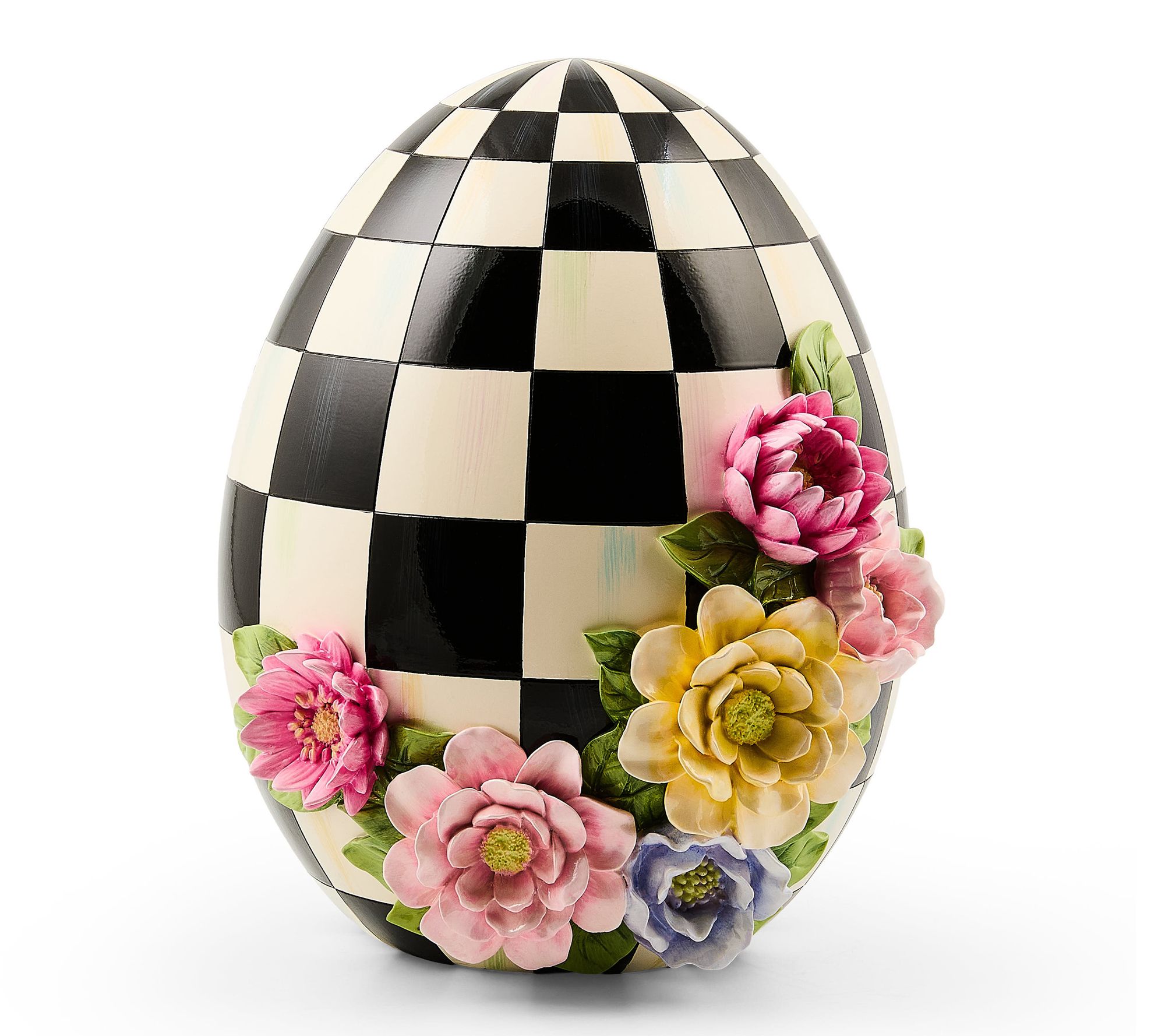Welcome spring celebrations with this cheerful floral tabletop egg, designed to enliven your mantle, sideboard, or entryway with festive color. Pair it with additional decorative eggs to create a bright seasonal display that captures the spirit of Easter gatherings. From MacKenzie-Childs.