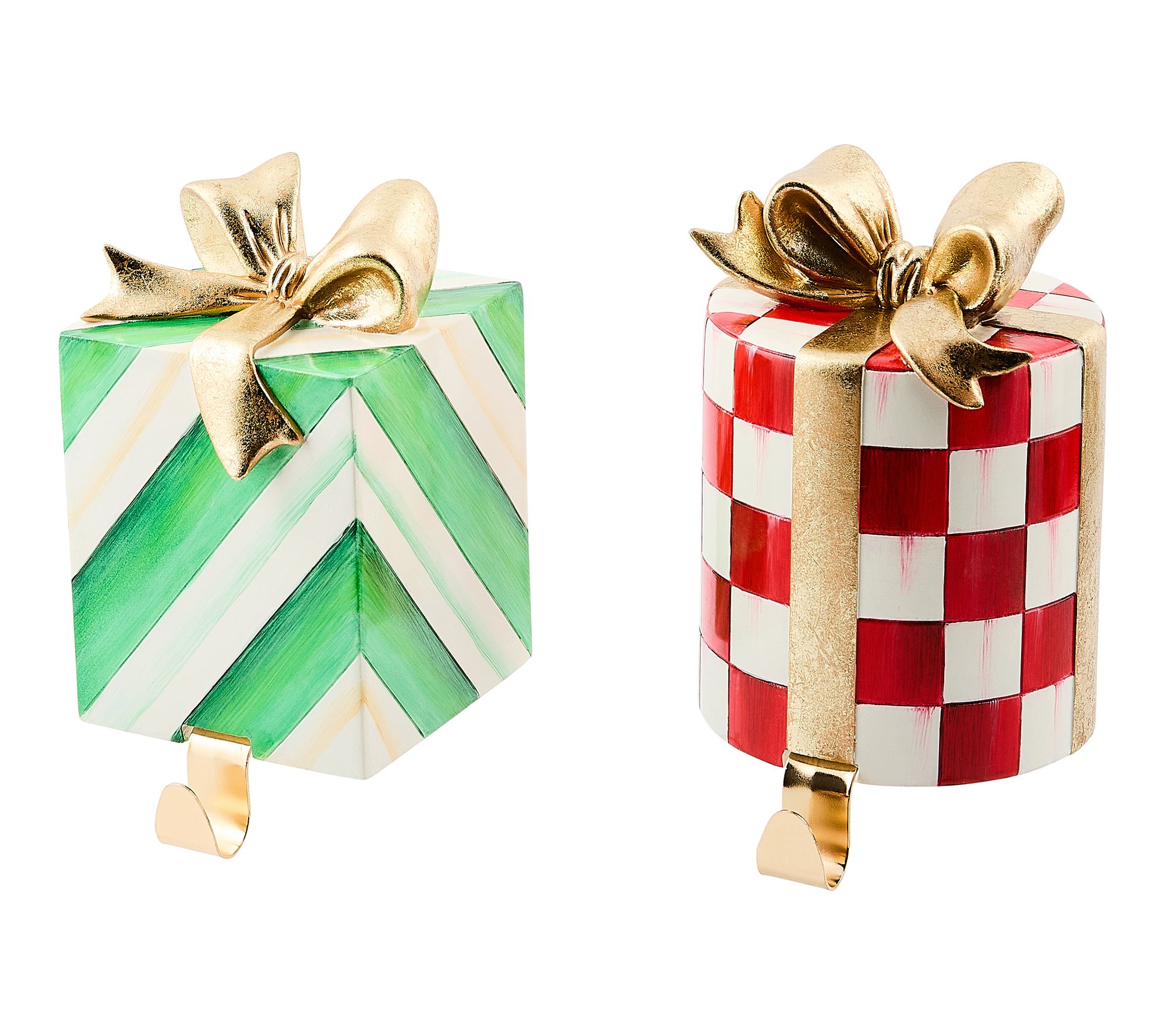 MacKenzie-Childs Gift Box Stocking Holders, Set of 2