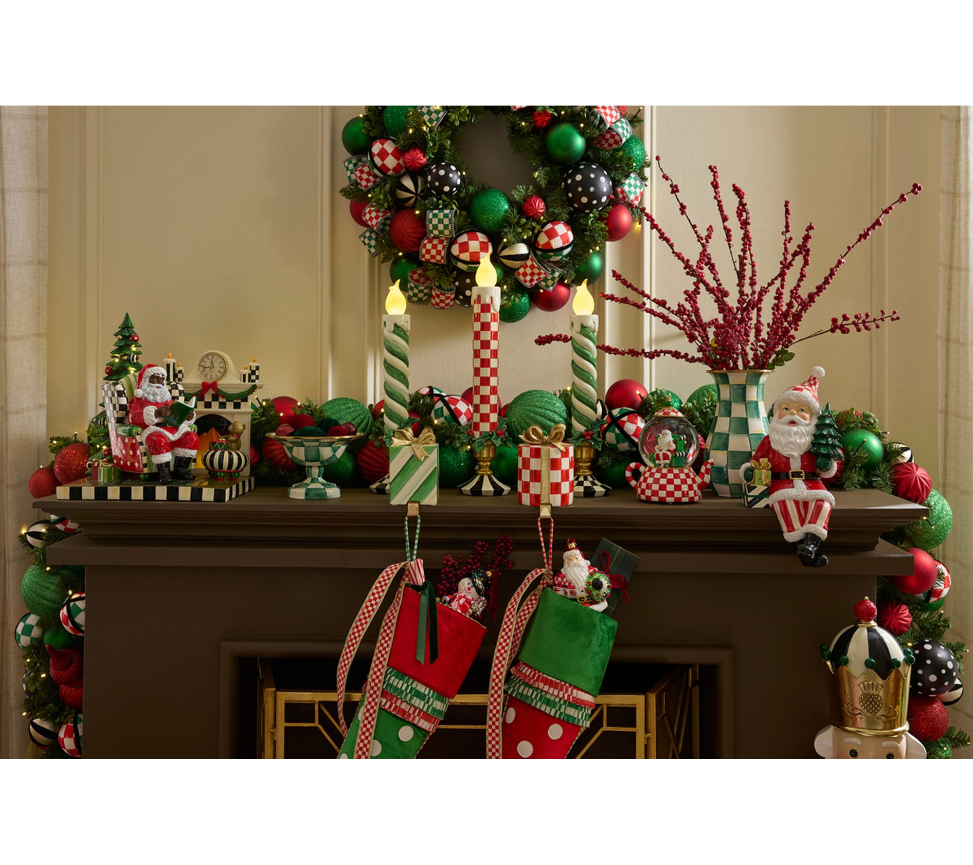 Add a festive touch to your mantel with these charming stocking holders, designed as gift boxes to bring extra holiday cheer. Whether you're displaying stockings for the whole family or accenting your seasonal decor, these holders combine whimsical style with sturdy support for all your Christmas treasures. From MacKenzie-Childs.