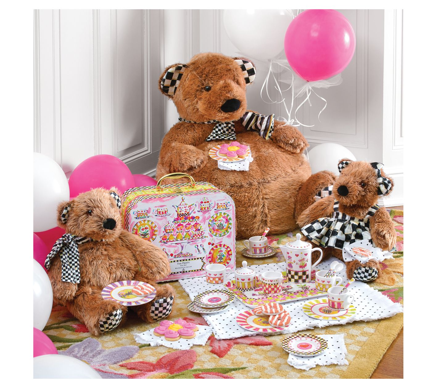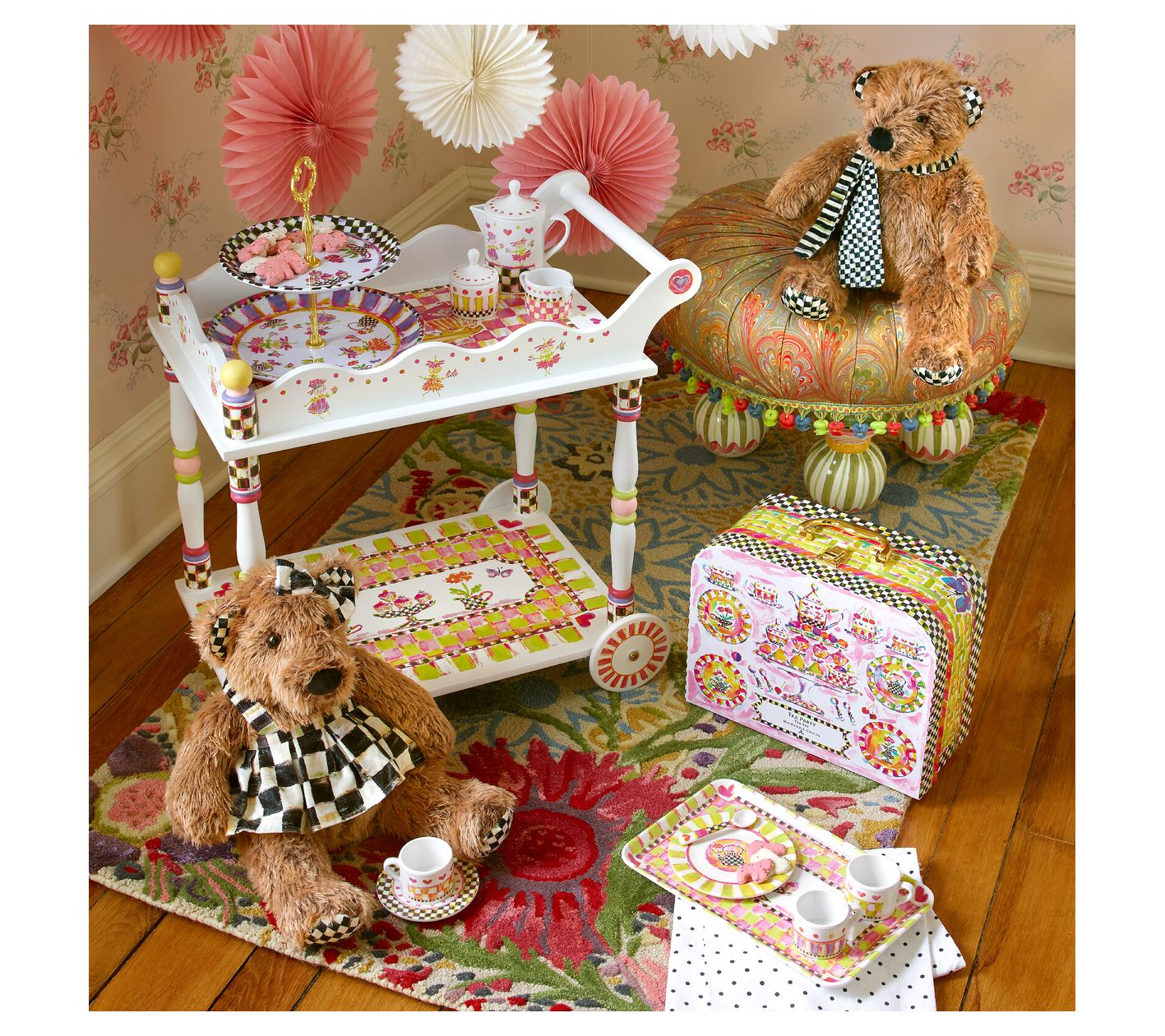 Meet Kenzie the bear, your child's new forest friend! Dressed in a charming Courtly Check print dress and matching bow, Kenzie is ready for anything from high tea to a day of adventures. Her soft, furry body is perfect for endless cuddles and imaginative play. From MacKenzie-Childs.