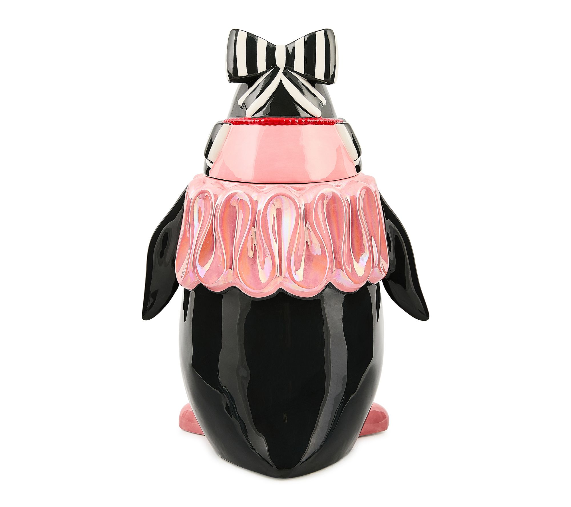 Add a whimsical touch to your kitchen and keep your favorite cookies within reach with this charming penguin ceramic cookie jar. Dressed in a pink tutu, bow, and ballet shoes, it's a delightful centerpiece that brings playful personality to baking days and festive gatherings. From MacKenzie-Childs.