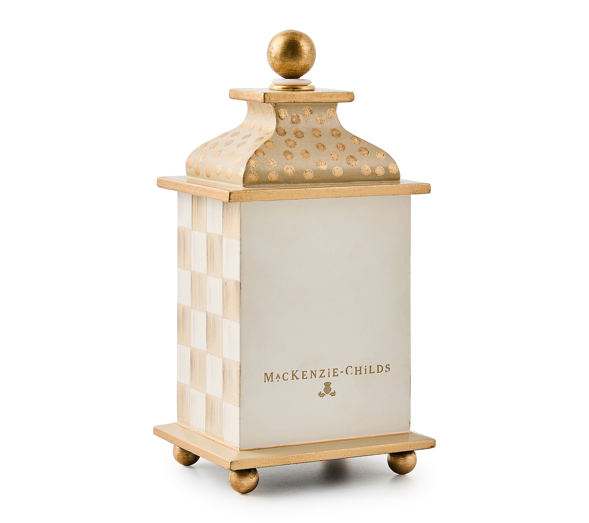 Spruce up your workspace or bedside with the Mocha Check Desk Clock, where whimsical design meets everyday function. Its warm pattern and brass accents bring a cheerful touch to your decor, making time checks a stylish moment, whether you're working late or greeting the morning. From MacKenzie-Childs.
