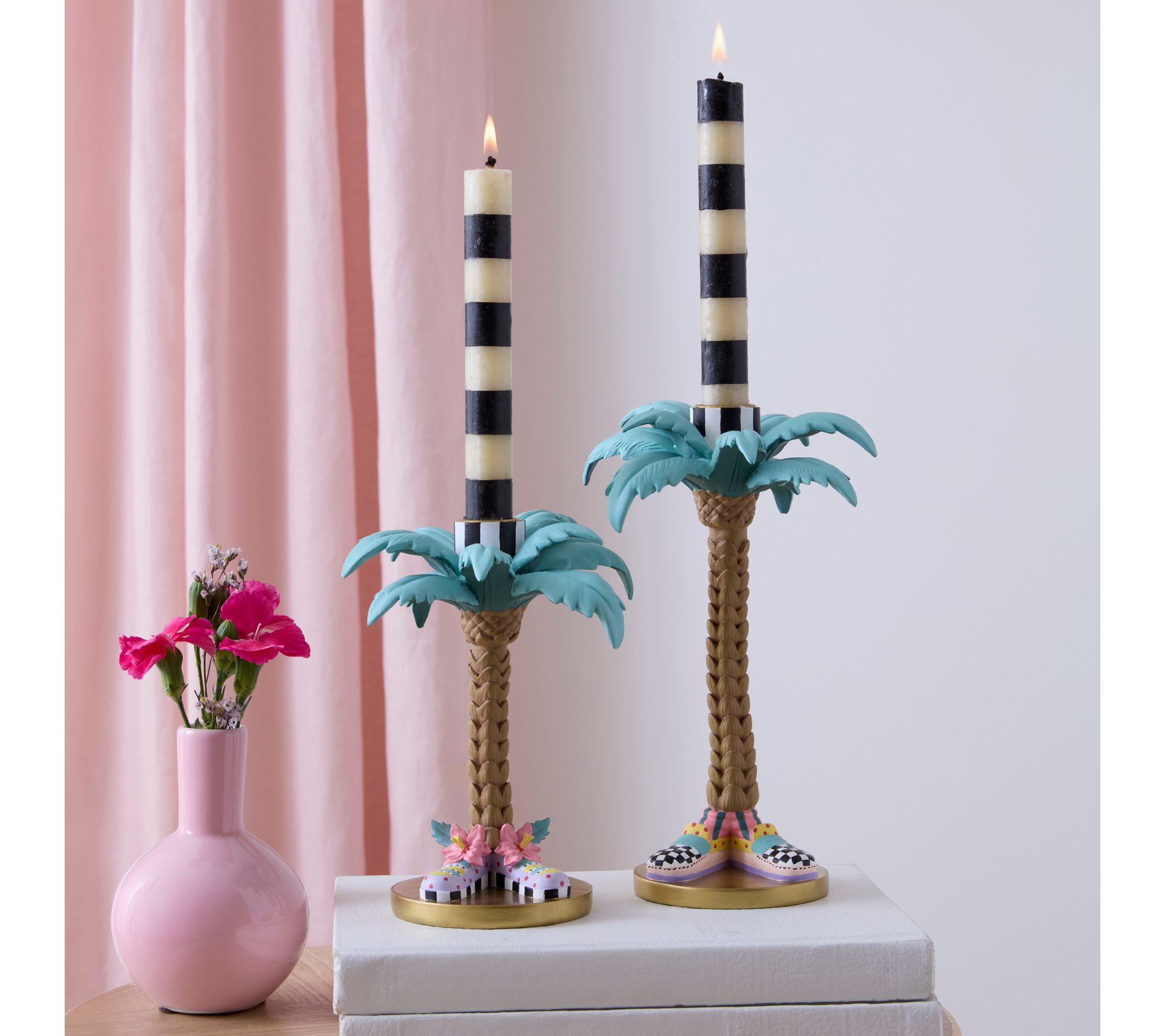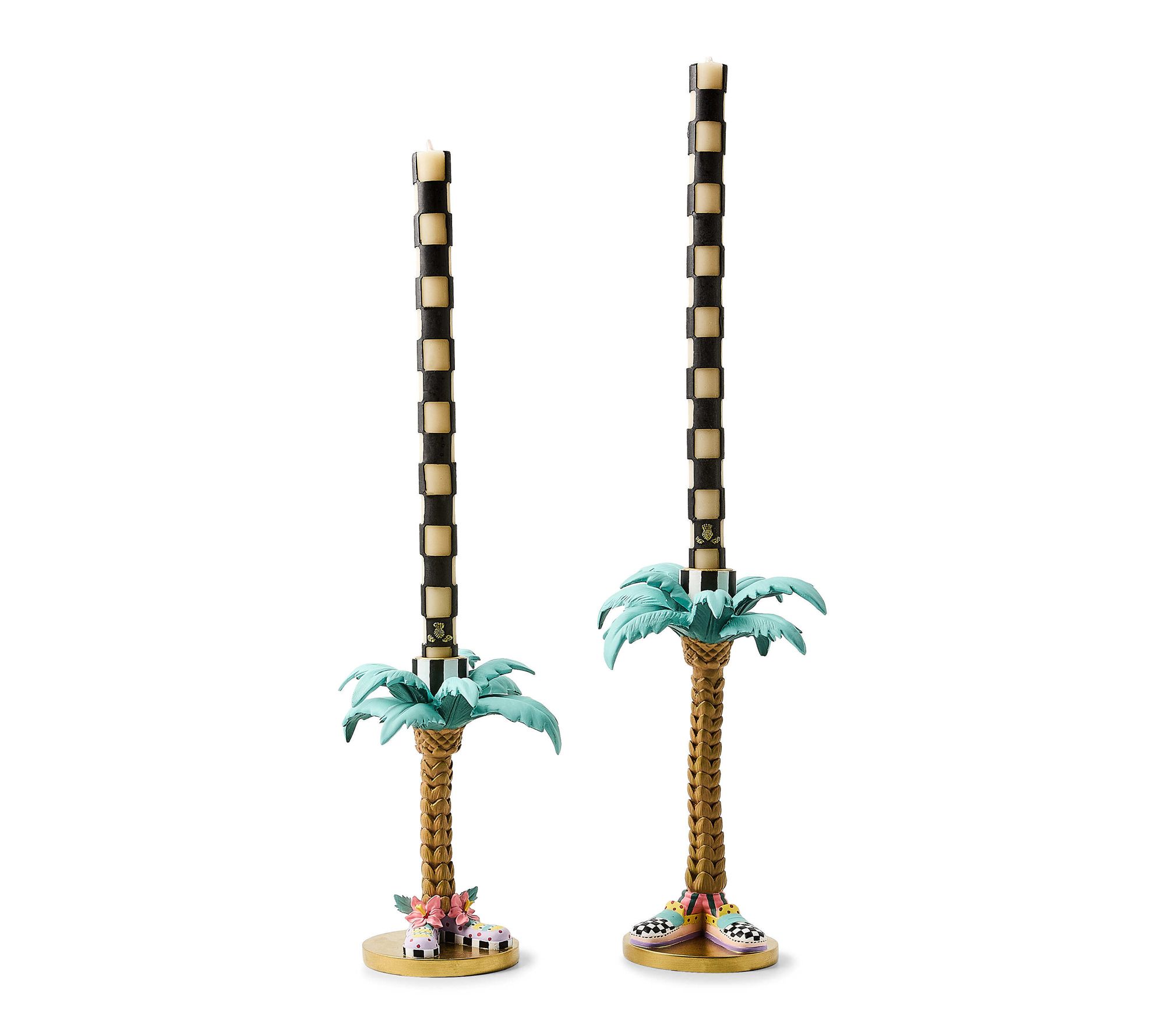 Transform your table into a tropical retreat with these whimsical Palm Tree Candle Holders, accented with playful, brightly colored shoes. Whether you're hosting a dinner party or adding a dash of fun to everyday decor, these holders are ready to showcase your favorite standard dinner candles and spark conversation. From MacKenzie-Childs.