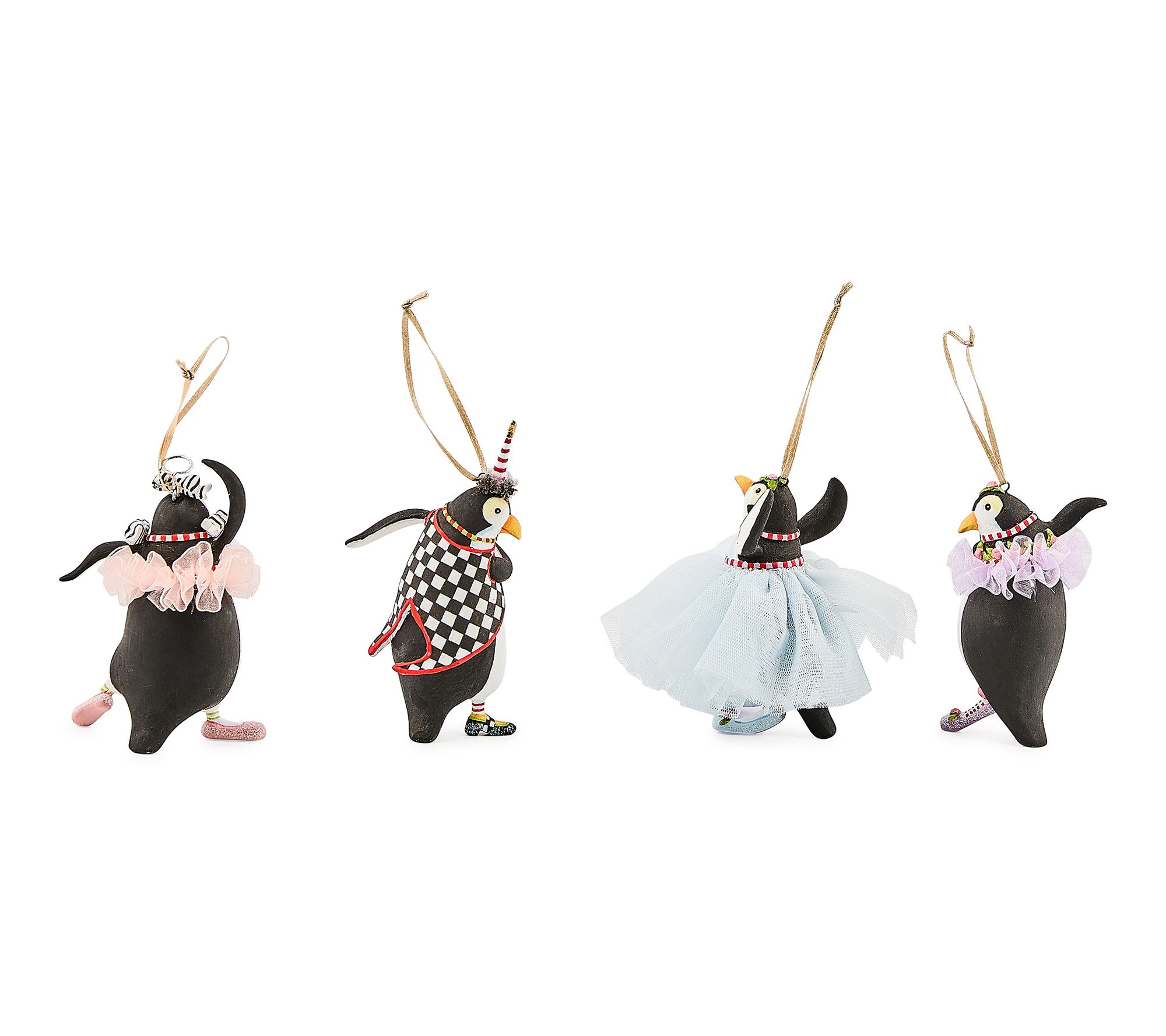 MacKenzie-Childs Penguins En Pointe Mini Ornaments, Set of 4