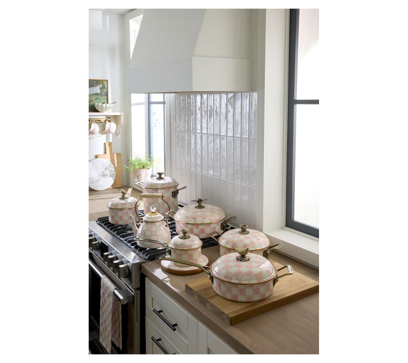 The Rosy Check 3 Qt. Casserole is your new kitchen companion, transitioning effortlessly from stovetop to tabletop with a pop of playful charm. Visualize your signature casseroles served with flair in this dish, adorned in vibrant hues of pink and white. A charming robin's nest knob adds a delightful touch, marrying elegance with functionality. From MacKenzie-Childs.