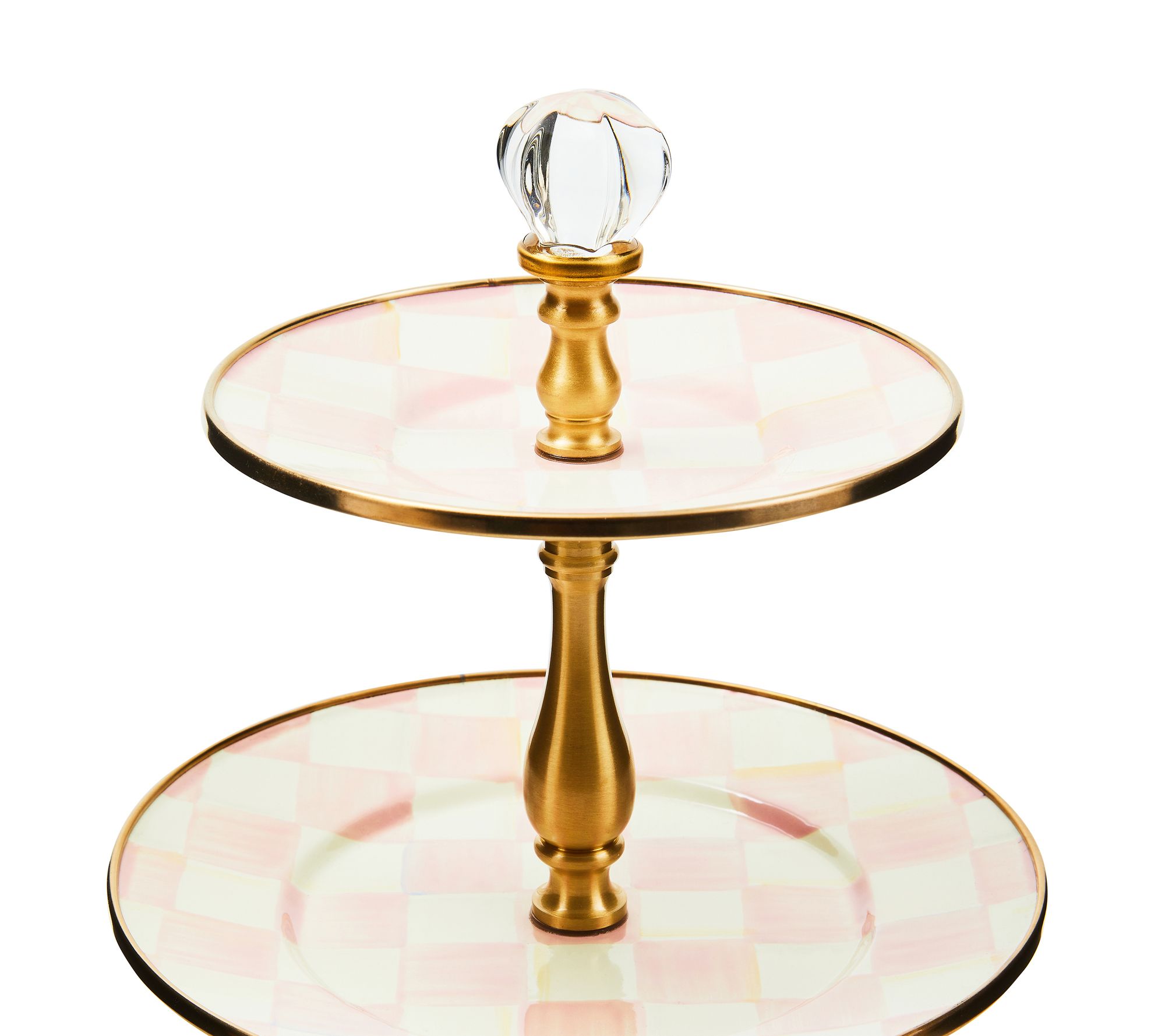Covered in cupcakes for your princess's party, or scones and biscotti for your morning coffee club, this three-tier sweet stand is sure to stand out. Featuring hand-painted pink checks on enameled steel, it's topped with a charming glass knob and bronzed stainless steel accents. Add elegance and whimsy to your gatherings effortlessly. From MacKenzie-Childs.