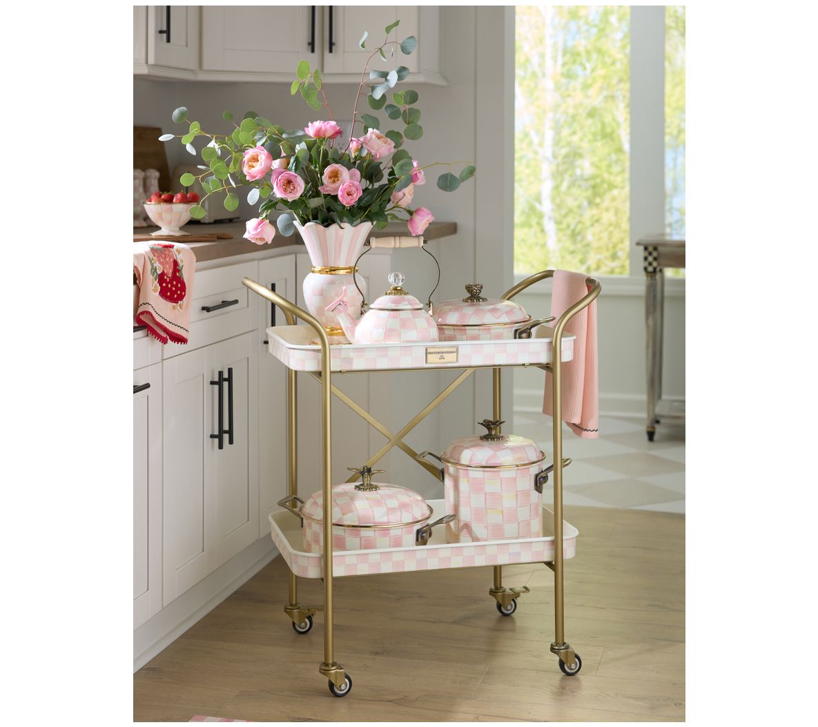 Bubbling over with MacKenzie-Childs style, the Rosy Check Whistling Tea Kettle will let you know when it's tea time. Featuring a heavy-gauge steel underbody and checks hand-painted in a range of rosy hues, it's topped with an elegant clear glass knob. From MacKenzie-Childs.