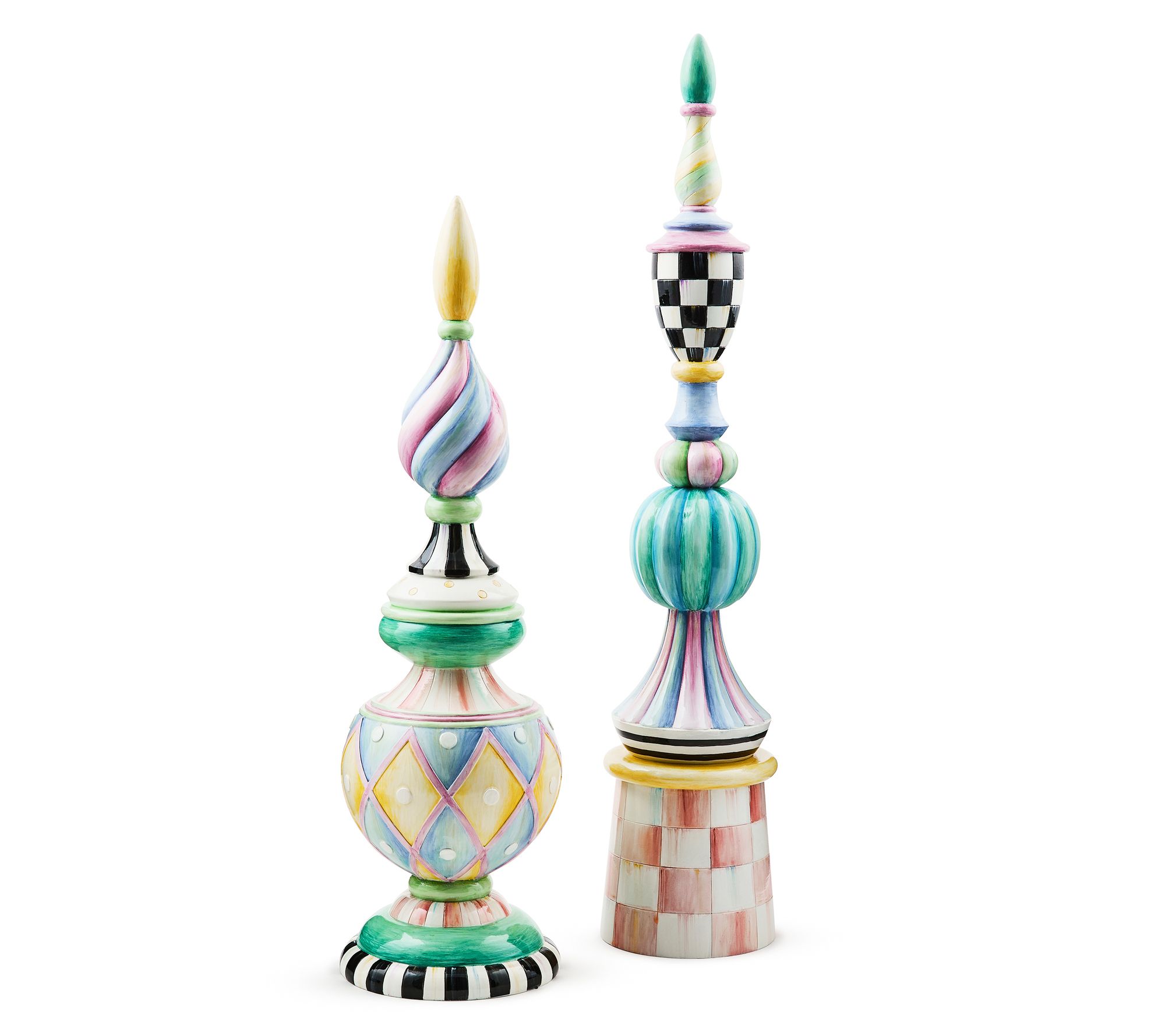 Add a touch of whimsy to your spring decor with this Rosy Meadow tall finial. Perfect for a tabletop display or giving your mantel a colorful focal point, this finial will be a unique conversation piece in any room. Inspired by the Taylor dinnerware patterns from MacKenzie-Childs, it features Courtly accents that effortlessly blend elegance and charm. From MacKenzie-Childs.