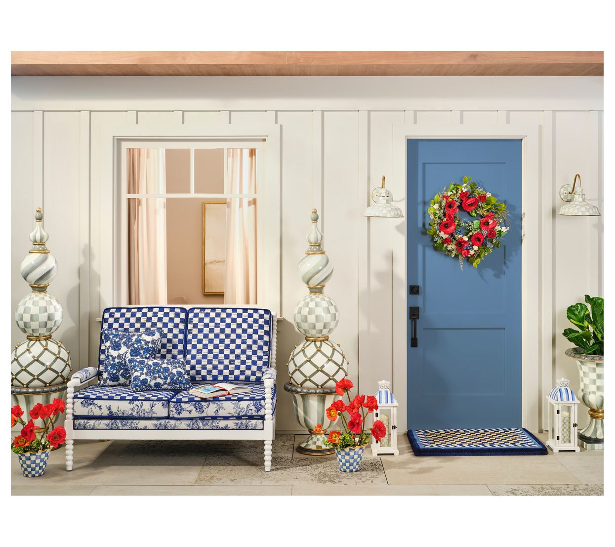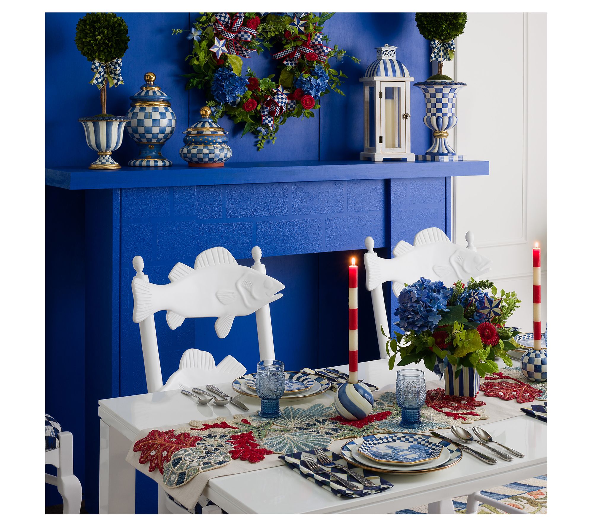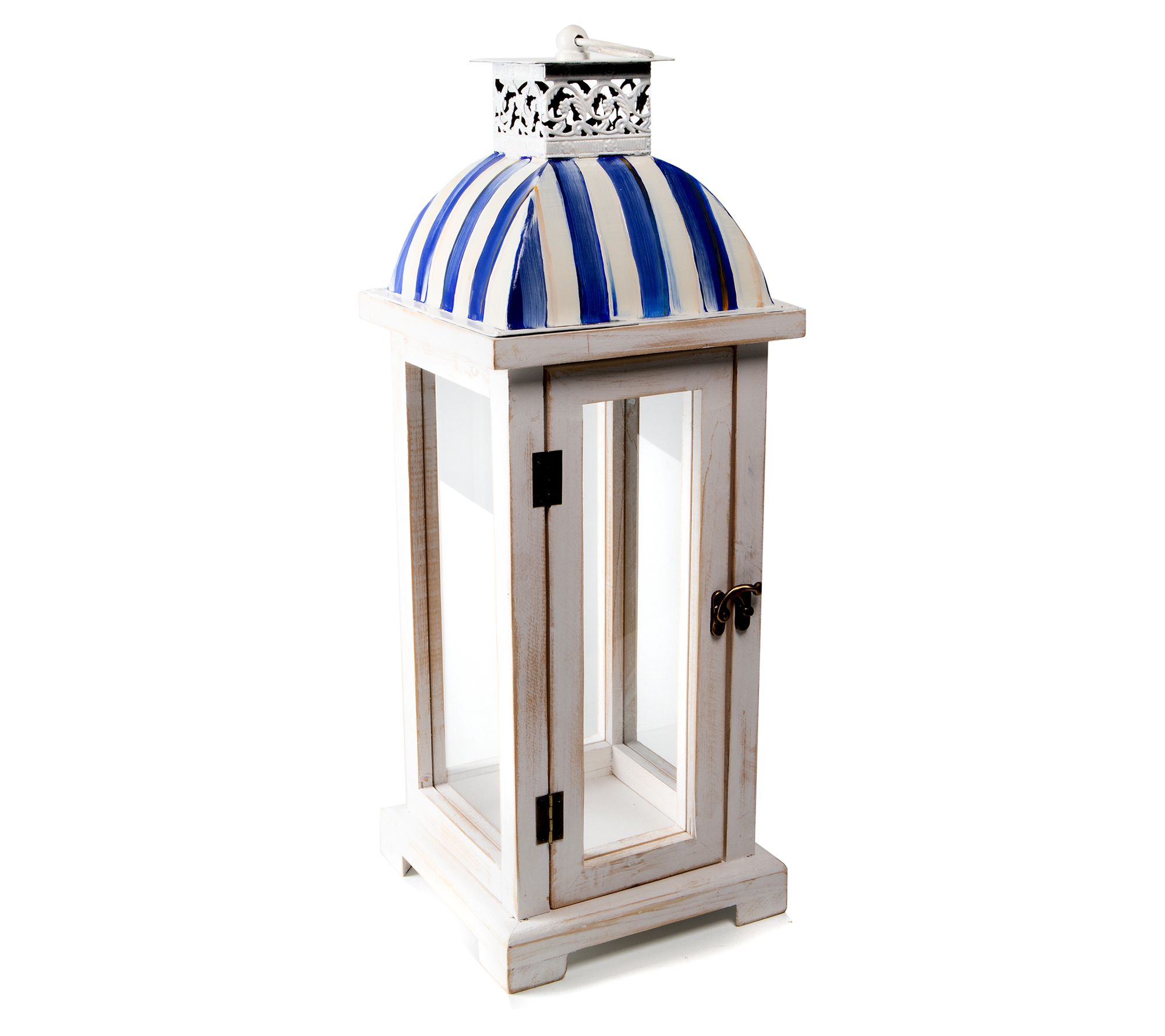 Illuminate your outdoor spaces with this charming lantern that combines functionality with a touch of whimsy. Crafted from whitewashed wood and adorned with distinctive stripes, this lantern is designed for use with flameless or LED candles, ensuring gentle illumination that enhances any patio or garden setting. From MacKenzie-Childs.