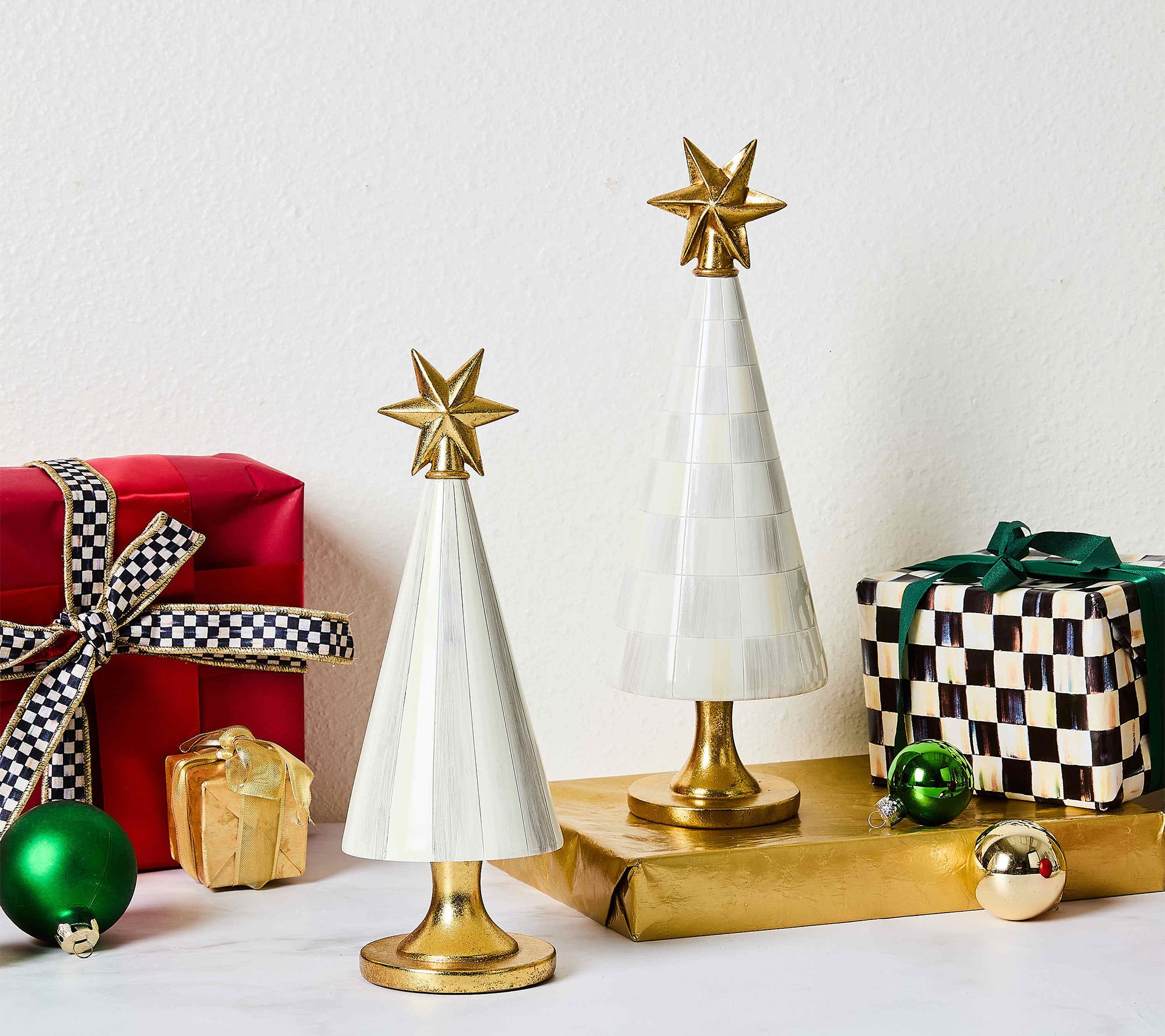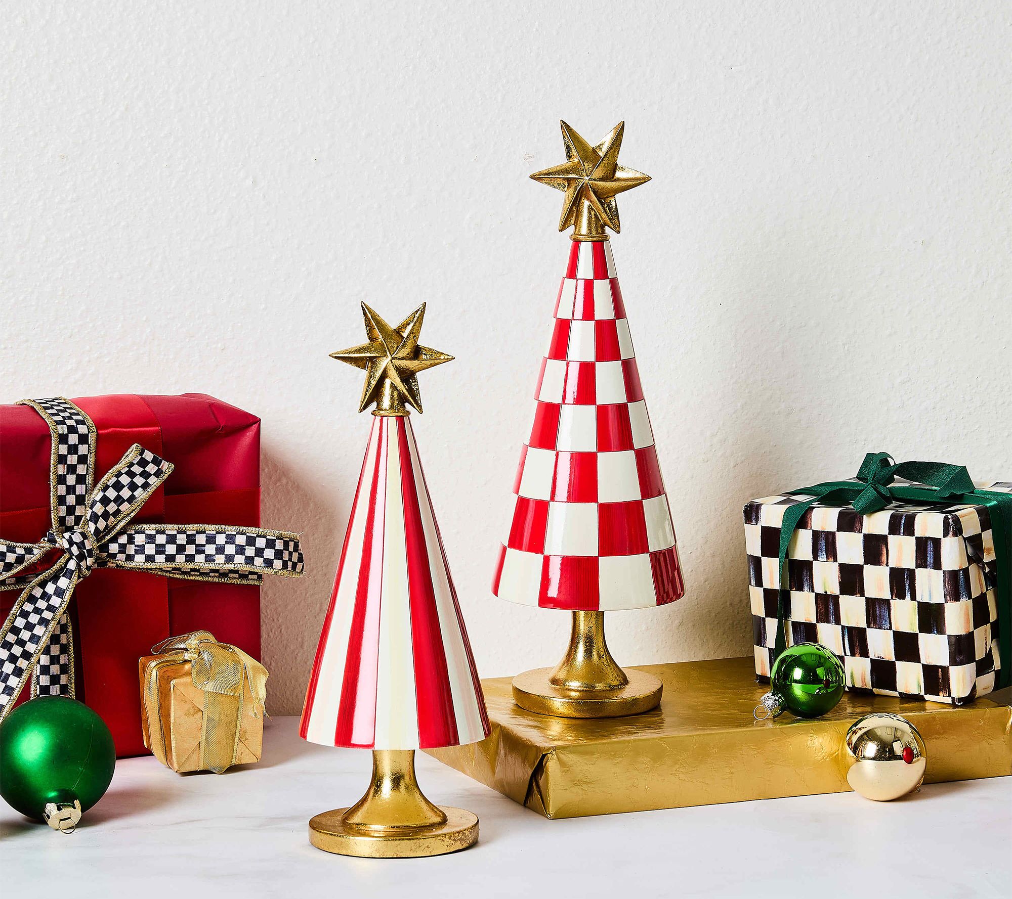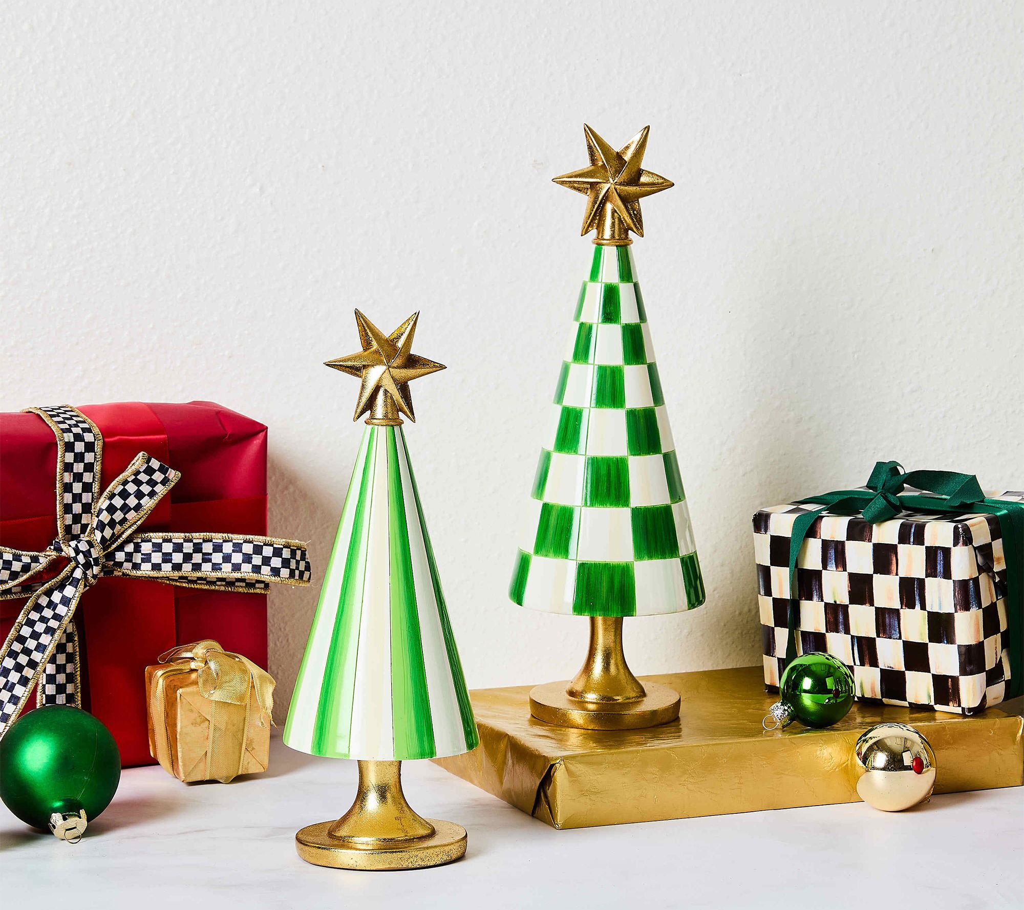 MacKenzie Childs Set of 2 Check & Stripe Trees