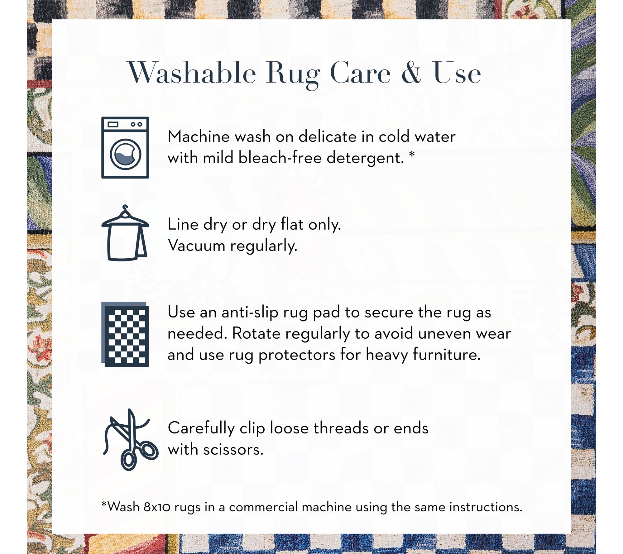 Effortlessly elevate your hallway or living space with the chic design of this snow leopard washable rug. Combining wild patterns with the classic charm of a check border, it adds a bold statement to any room. From MacKenzie-Childs.