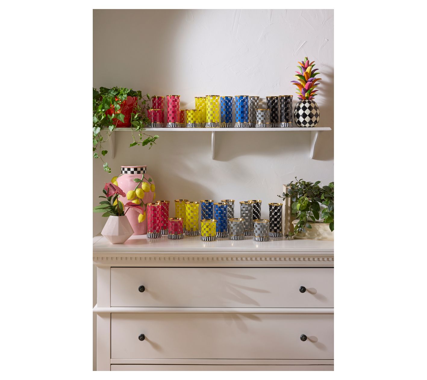 Bring a touch of whimsy and vibrant color to your home with this MacKenzie-Childs Tutti Frutti Pineapple. Perfect for elevating your entertaining space, this stunning piece combines the charming Courtly Check pattern with a playful burst of multicolored leaves. From MacKenzie-Childs.