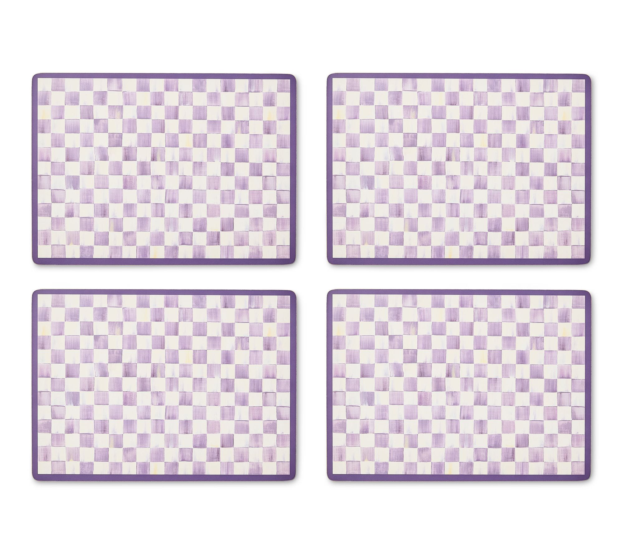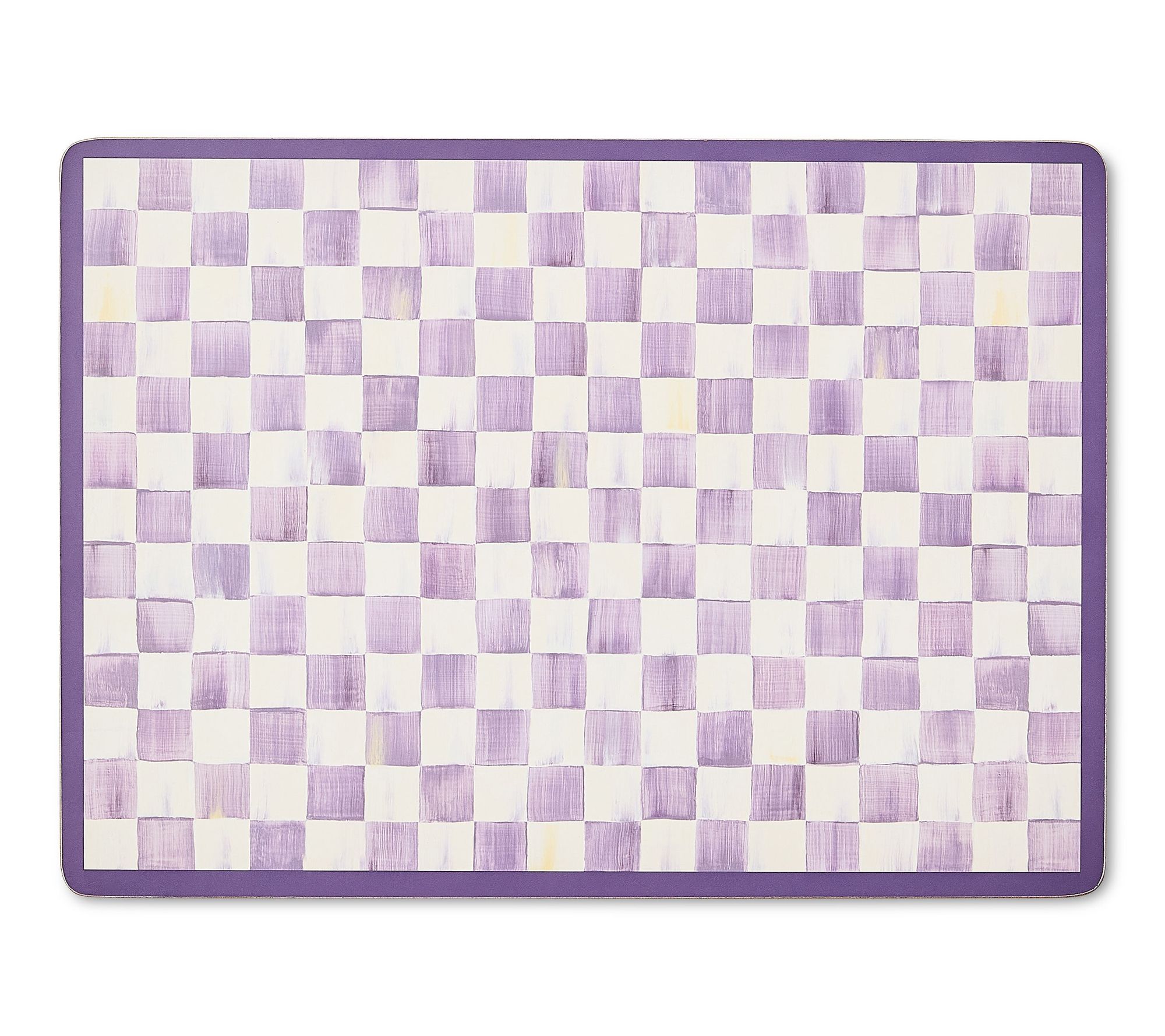 Bring classic charm and practical beauty to every meal with this set of four Violet Check or Violet Tartan Placemats. Perfect for everything from summer picnics to seasonal feasts, each placemat features an elevated purple pattern -- choose from elegant checks or timeless tartan -- that instantly adds sophistication to your table setting. From Mackenzie-Childs.