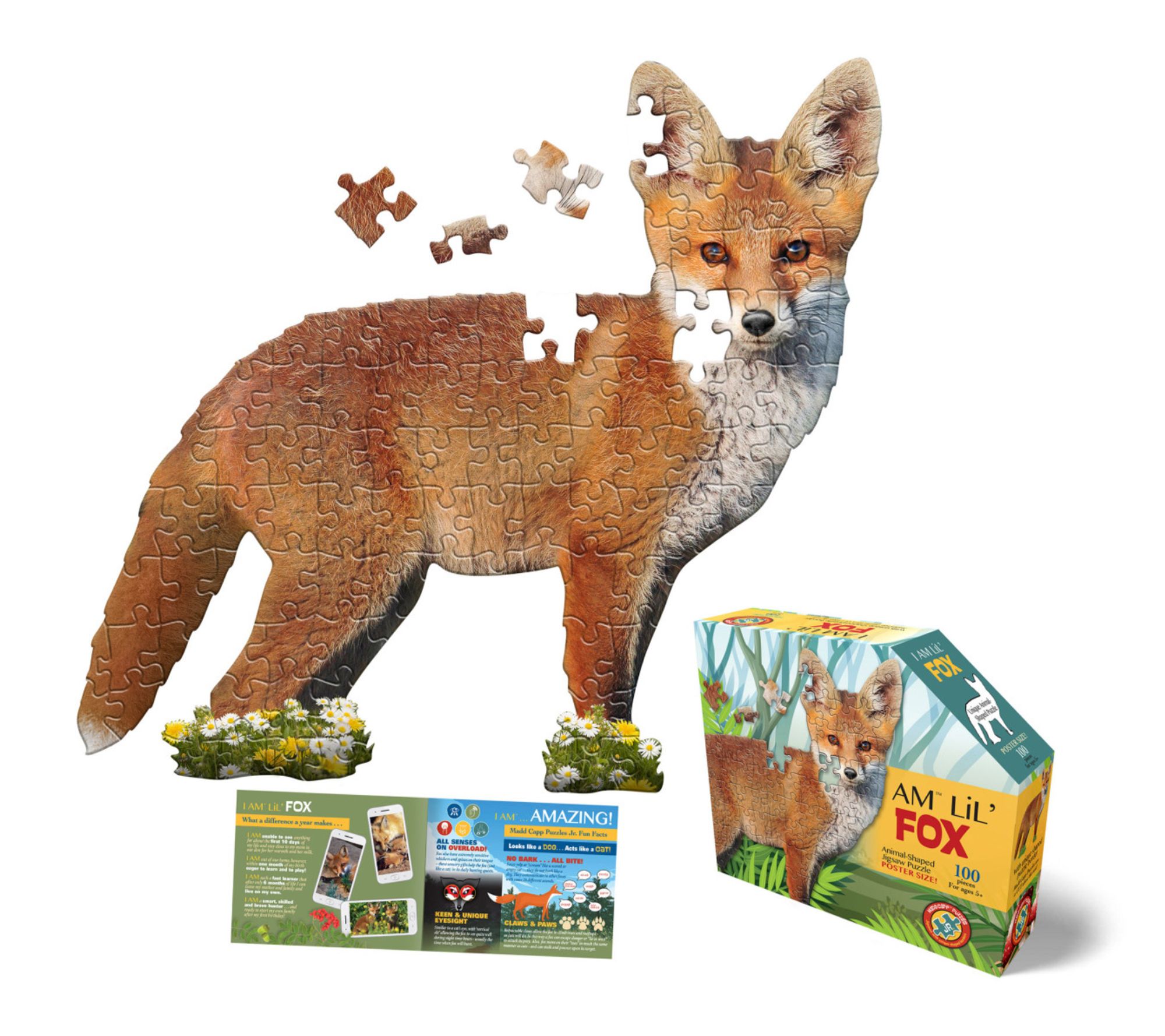 Gather your loved ones for an engaging evening with this 100-piece fox-shaped jigsaw puzzle. As you piece together the lifelike animal design, enjoy learning fun fox facts from the included insert -- creating an interactive experience everyone can share. Challenge yourself, family, and friends to complete a poster-sized image that inspires and entertains. From Madd Capp.