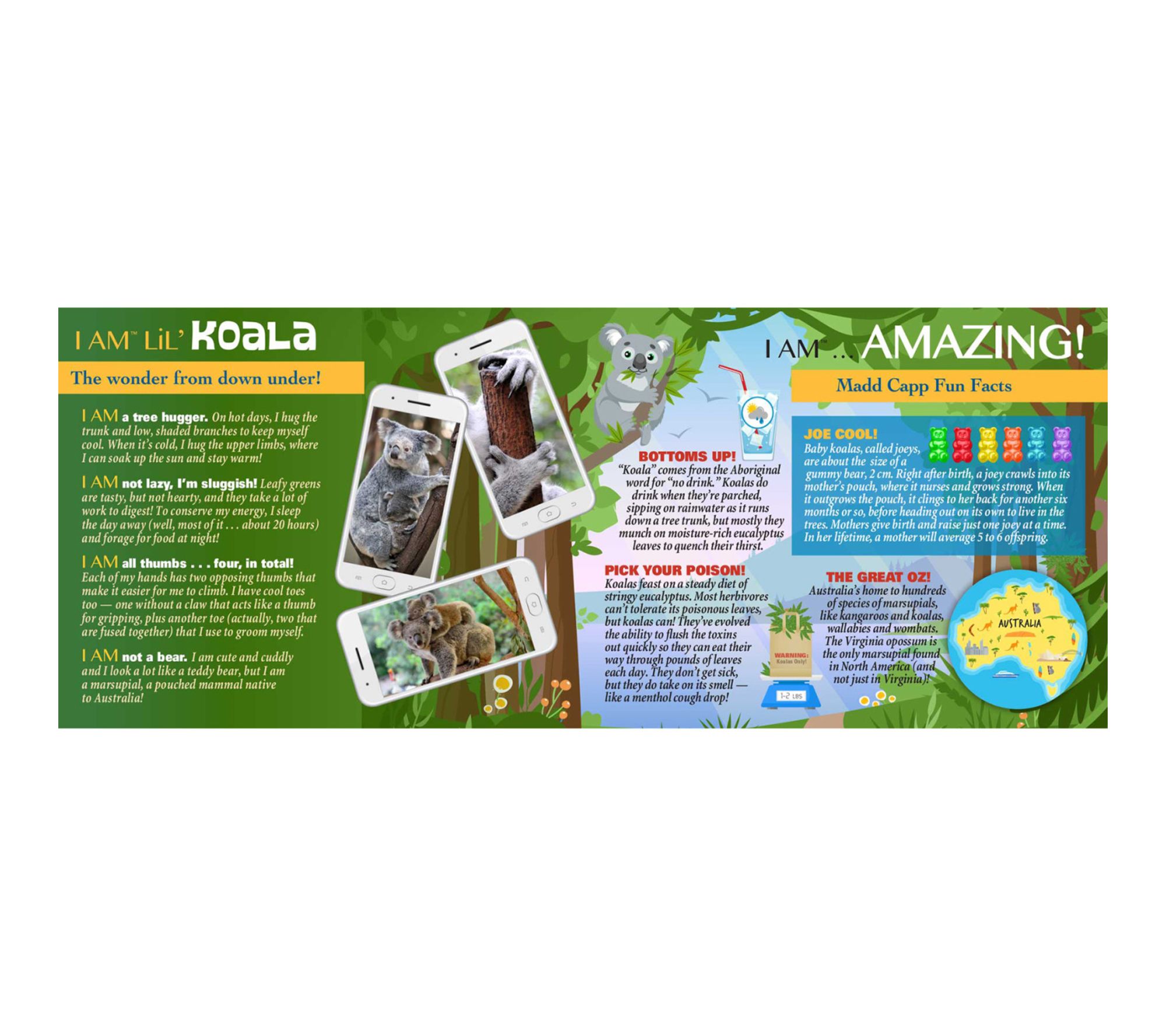 Bring the wild charm of the outback to your next family activity with this animal-shaped jigsaw puzzle. Oversized pieces make handling easy, while the unique border and photo-realistic koala image offer both challenge and style. An included Fun Facts booklet invites everyone to learn something new as you piece together this impressive poster-sized puzzle. From Madd Capp.