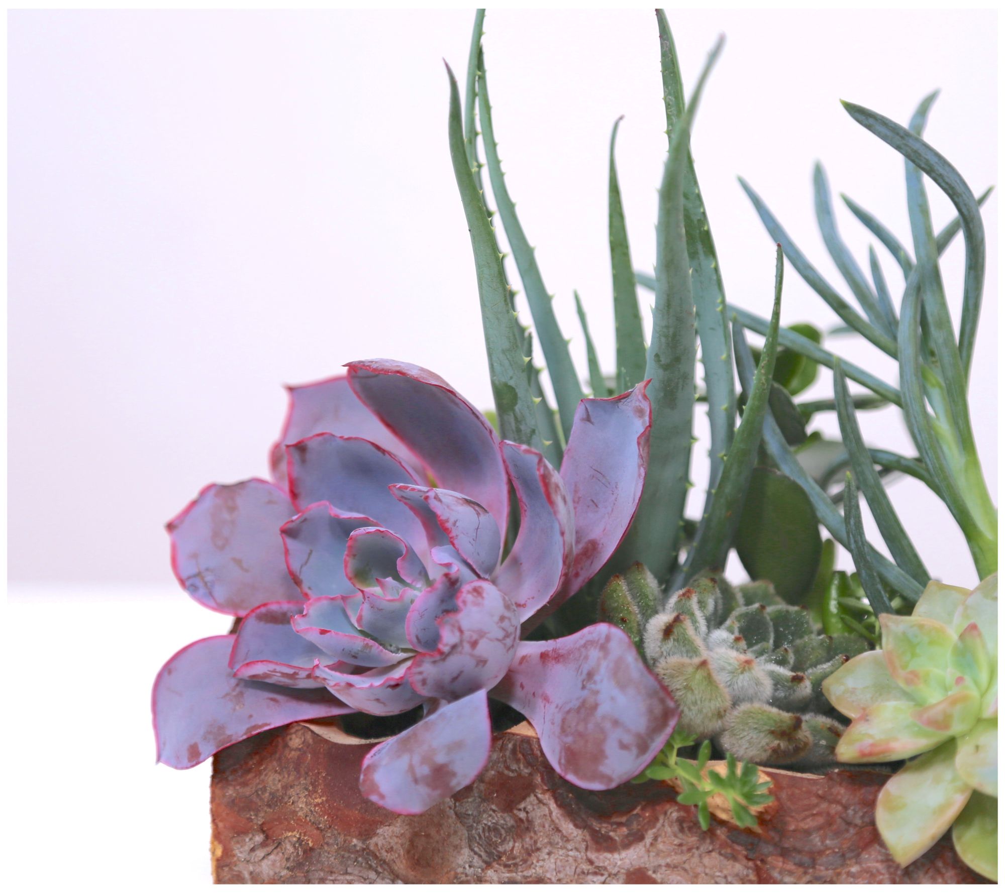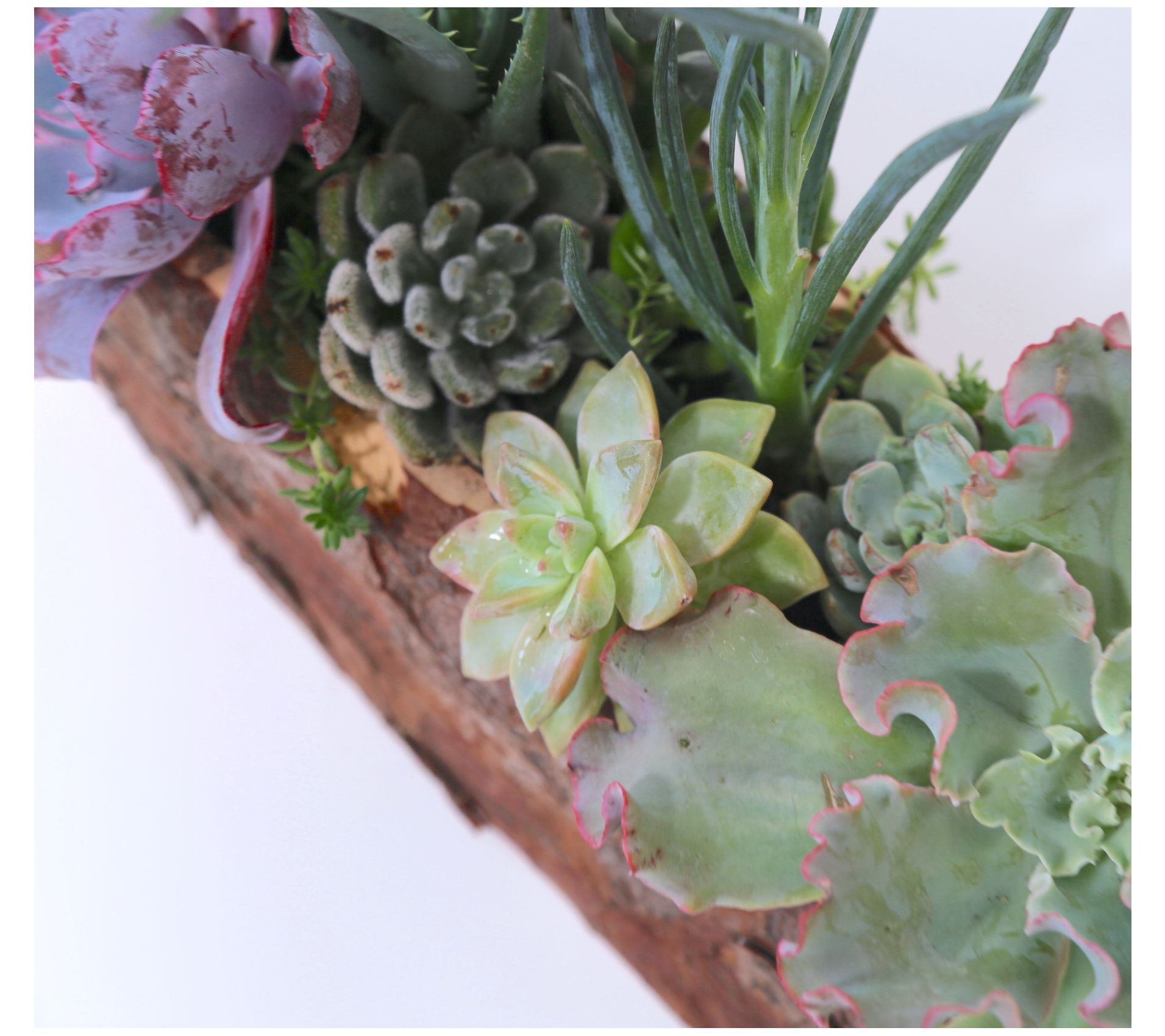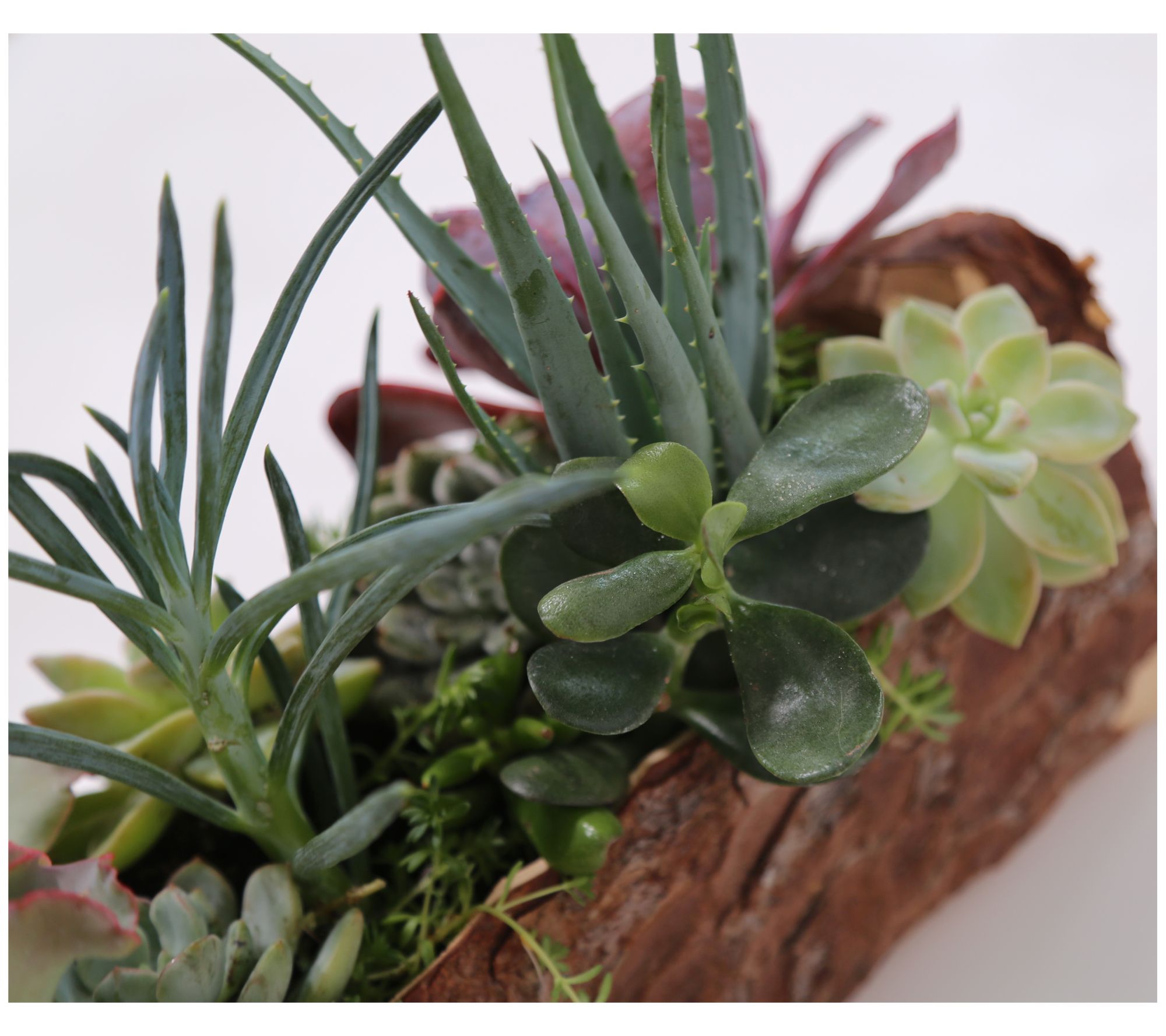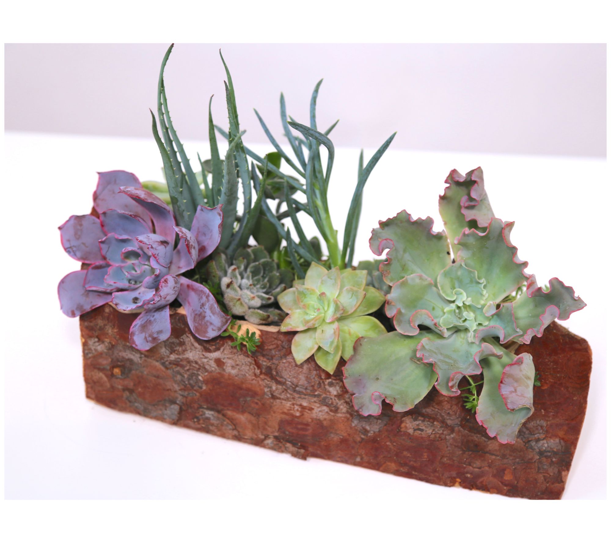 • Shipped as: assorted live succulents, 10" carved log, and soil