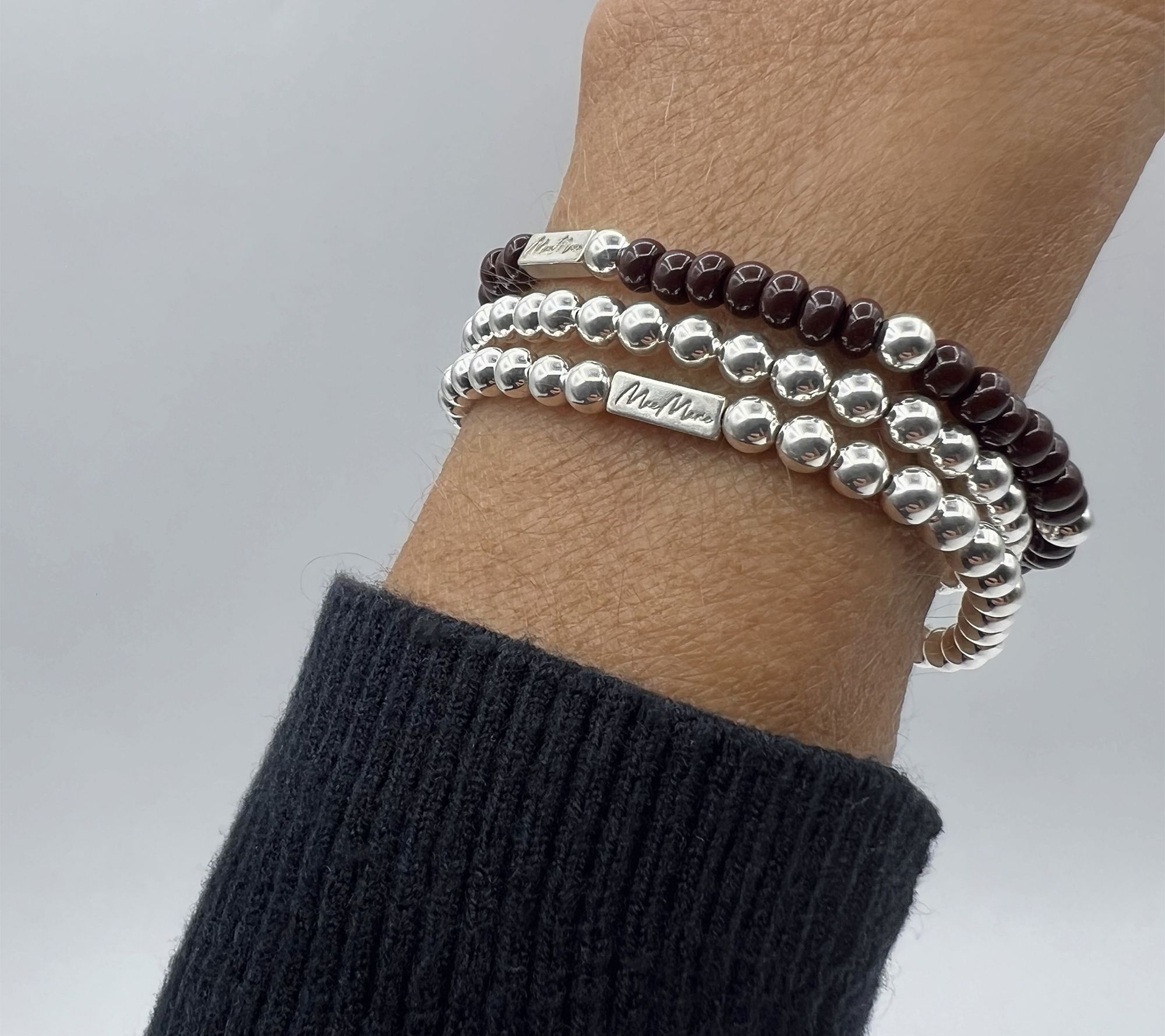 MaeMarie Wraps Bark Bead Bracelet Set, SterlingSilver