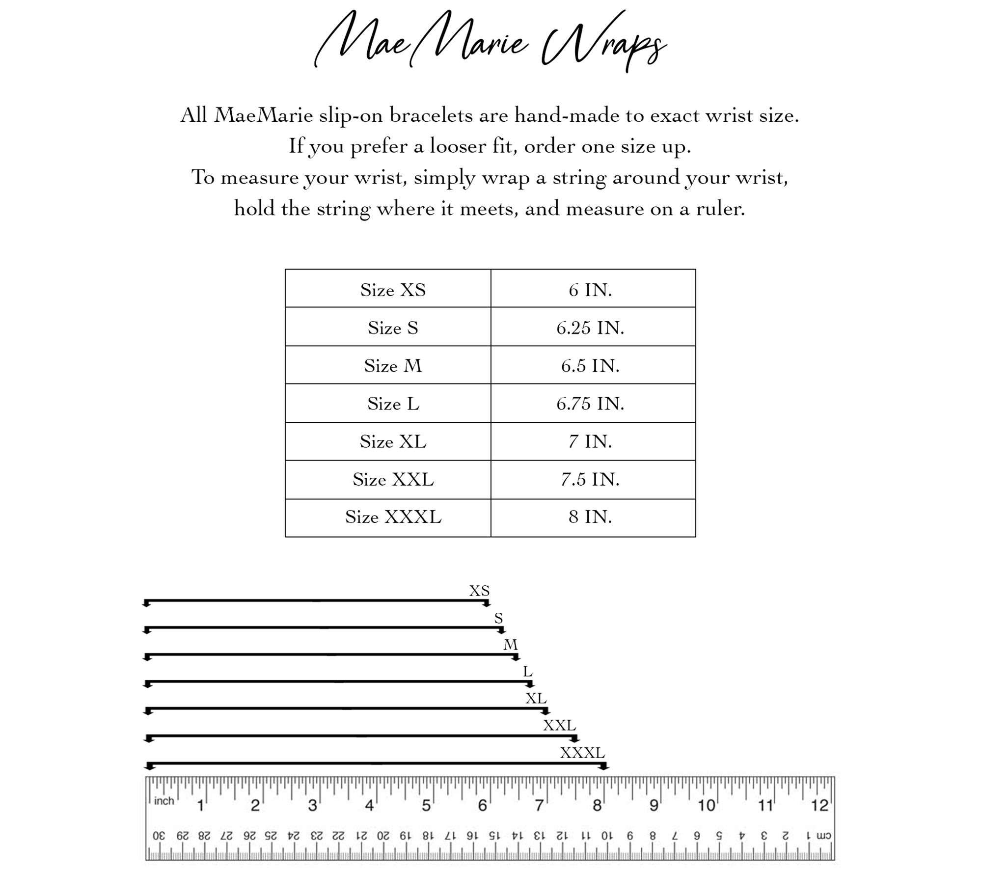 • XS: 6" fit; measures approximately 1/8"W